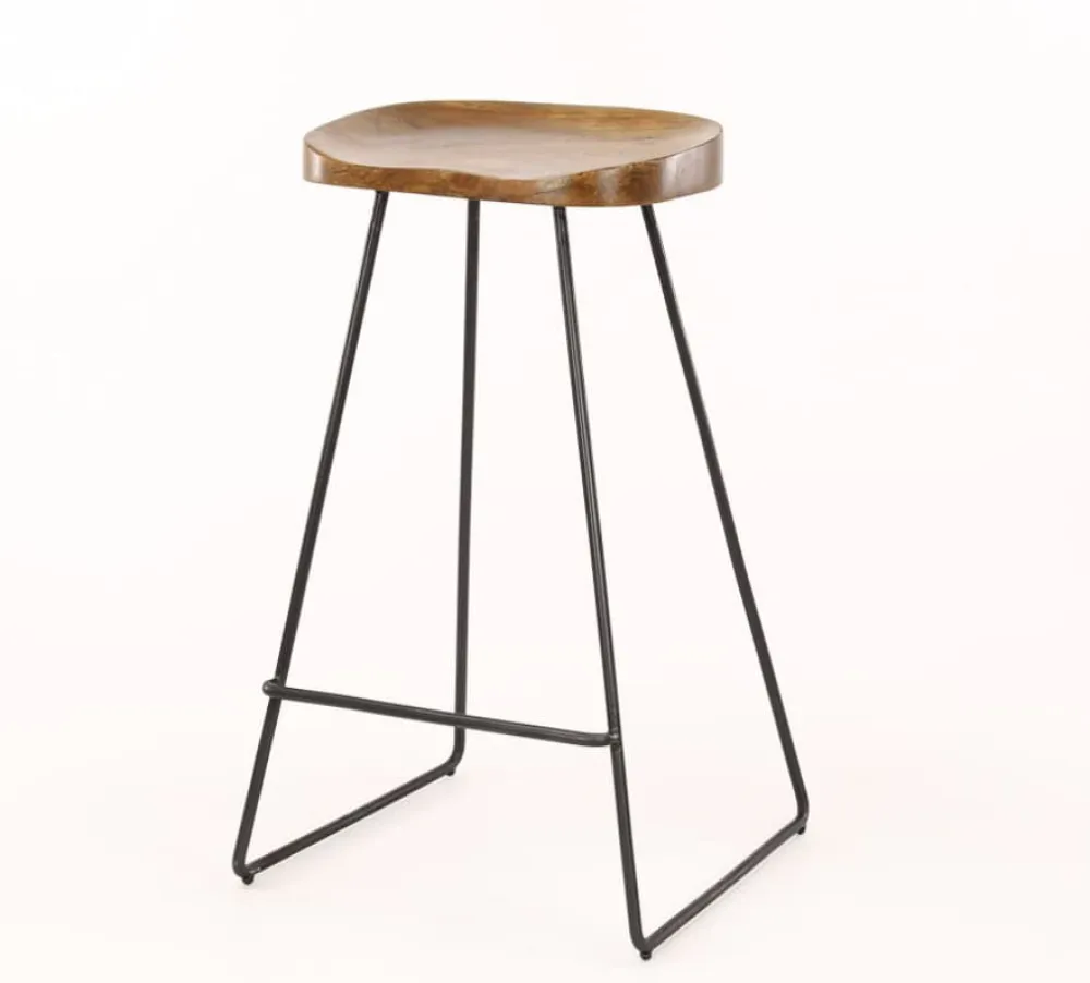 Barkruk Eef is een robuuste barstoel met een vintage karakter en een warme uitstraling. De zitting is gemaakt van massief acaciahout en heeft een laag, ergonomisch gevormd kuipje dat comfortabel aanvoelt zonder bekleding. De natuurlijke houtnerf geeft elke barkruk een uniek uiterlijk. Het zwarte metalen sledeframe met geïntegreerde voetensteun zorgt voor een stevig onderstel met een industriële touch. Eef is verkrijgbaar in verschillende houttinten en wordt per set van twee stuks geleverd. Perfect voor wie houdt van karaktervol en onderhoudsvriendelijk design aan een kookeiland of bartafel.