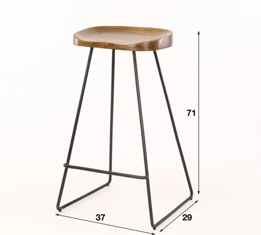 Om het hout in goede conditie te houden, adviseren we de barkruk regelmatig af te nemen met een droge of licht vochtige doek. Vermijd agressieve schoonmaakmiddelen en langdurige blootstelling aan zonlicht of warmtebronnen. Voor het metalen frame volstaat afnemen met een zachte doek. Gebruik viltjes of dopjes onder de poten om je vloer te beschermen tegen krassen.