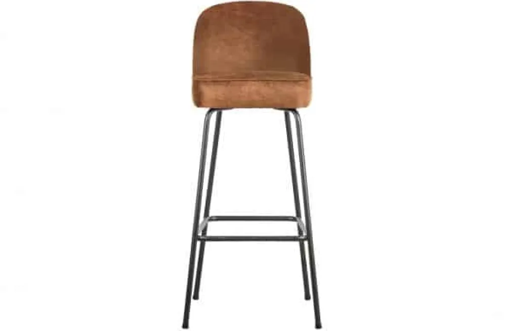 Barstoel Vogue van het Nederlandse merk BePureHome is een chique en eigentijdse barkruk die elegantie en comfort samenbrengt. De afgeronde vormen in combinatie met een zachte velvet of eco-leren bekleding geven de stoel een luxe uitstraling. Het zwarte metalen onderstel met poedercoating zorgt voor stabiliteit en een moderne touch. Vogue is verkrijgbaar in twee zithoogtes (64 cm en 79 cm) en past daarmee perfect aan zowel lage als hoge bartafels.