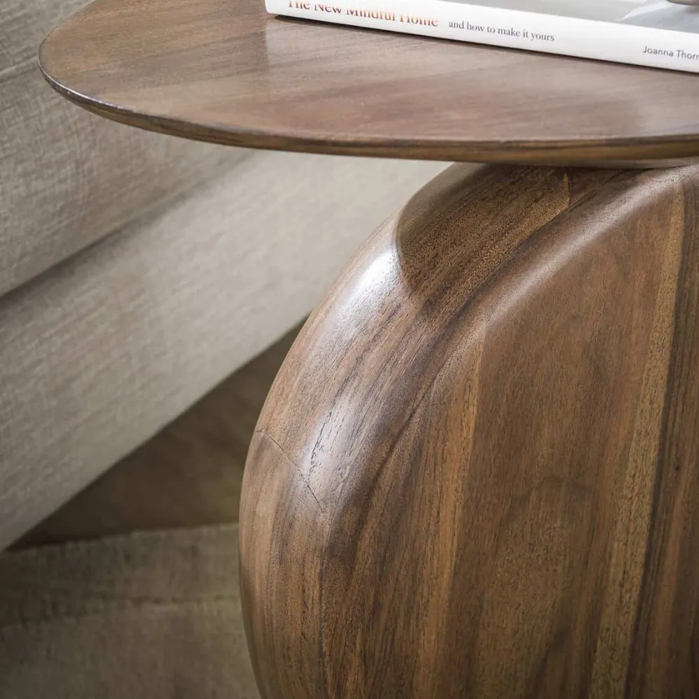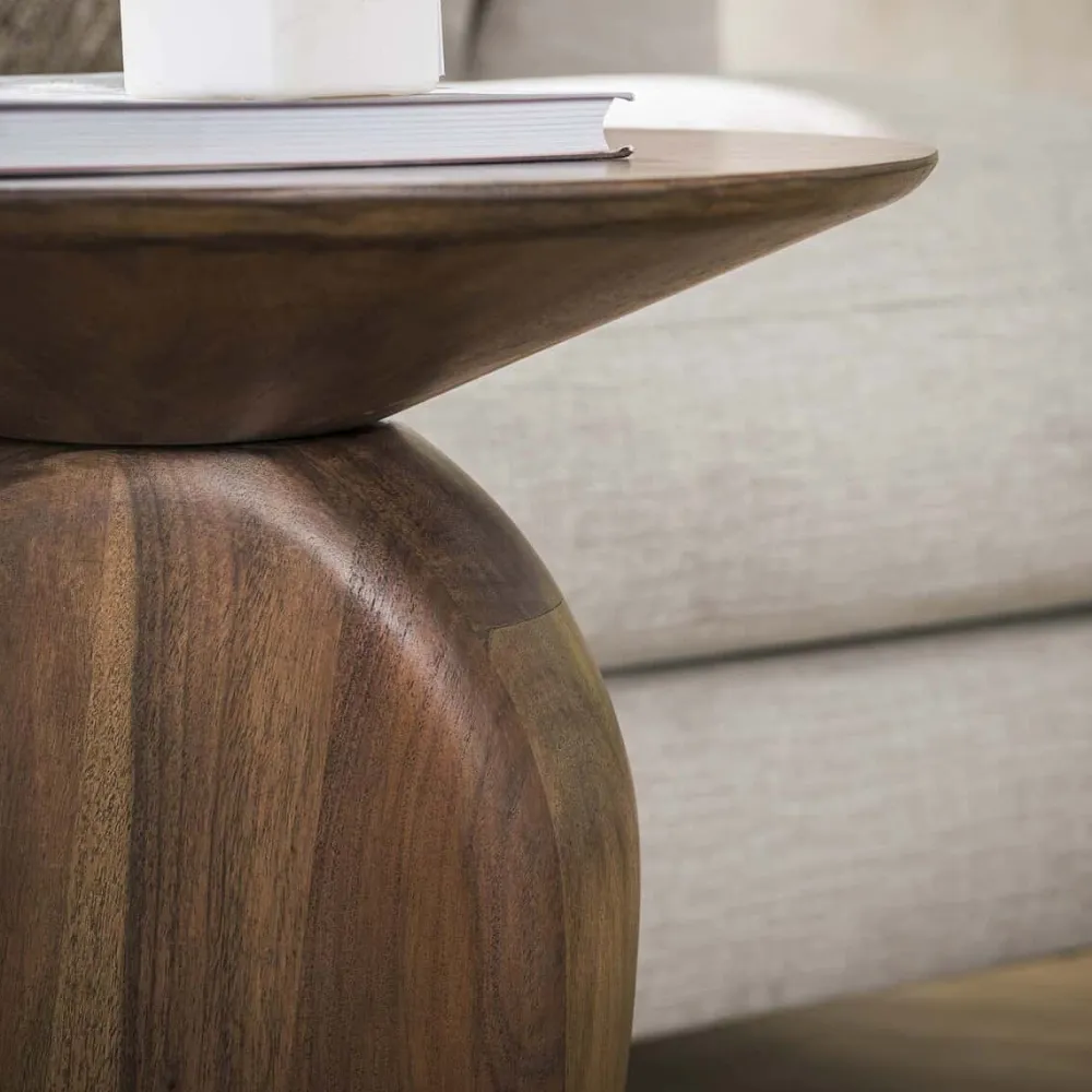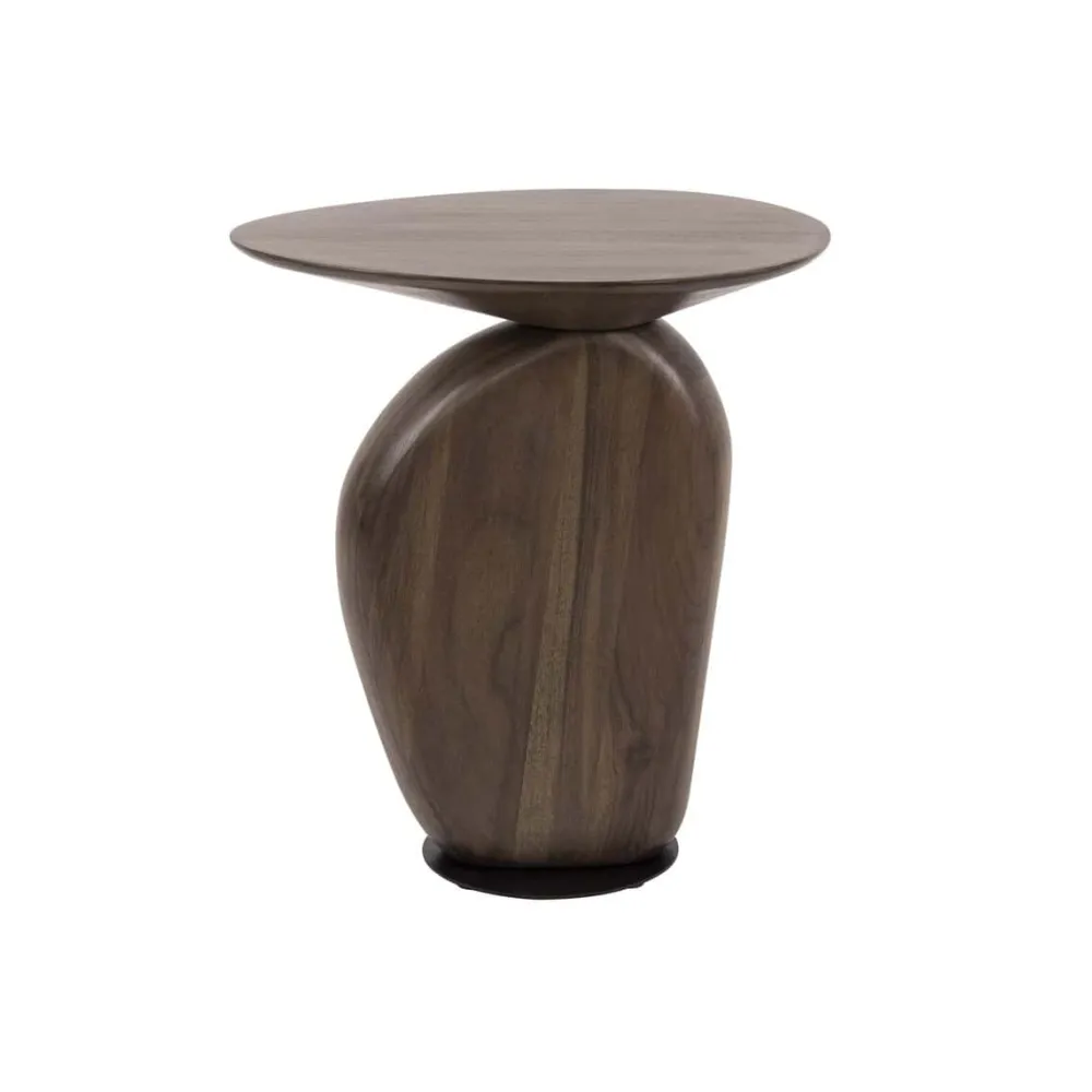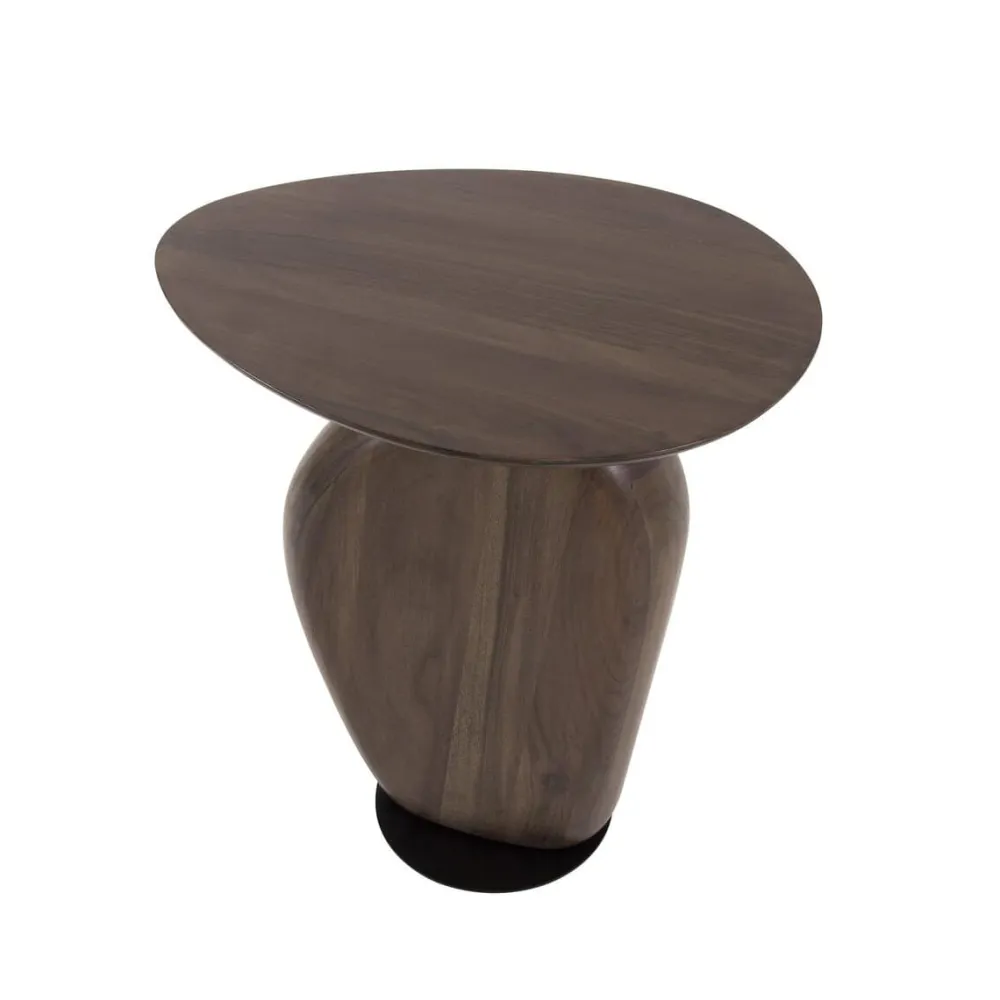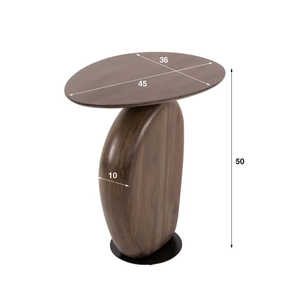De bijzettafel Aart is vervaardigd uit acaciahout en afgewerkt met een matte, bruine finish die het hout een warme uitstraling geeft. De organische vormen van het blad zorgen voor een speels en natuurlijk accent.