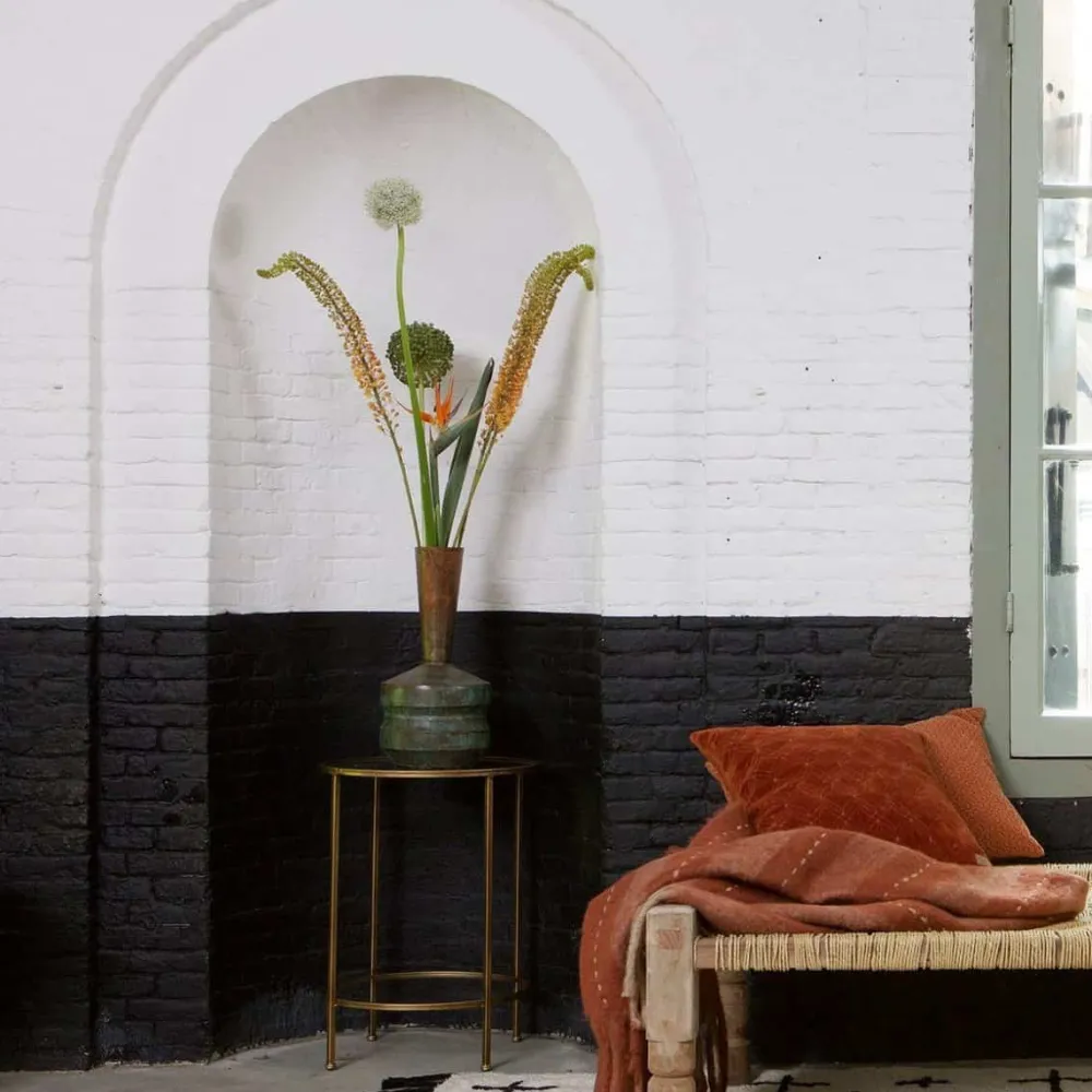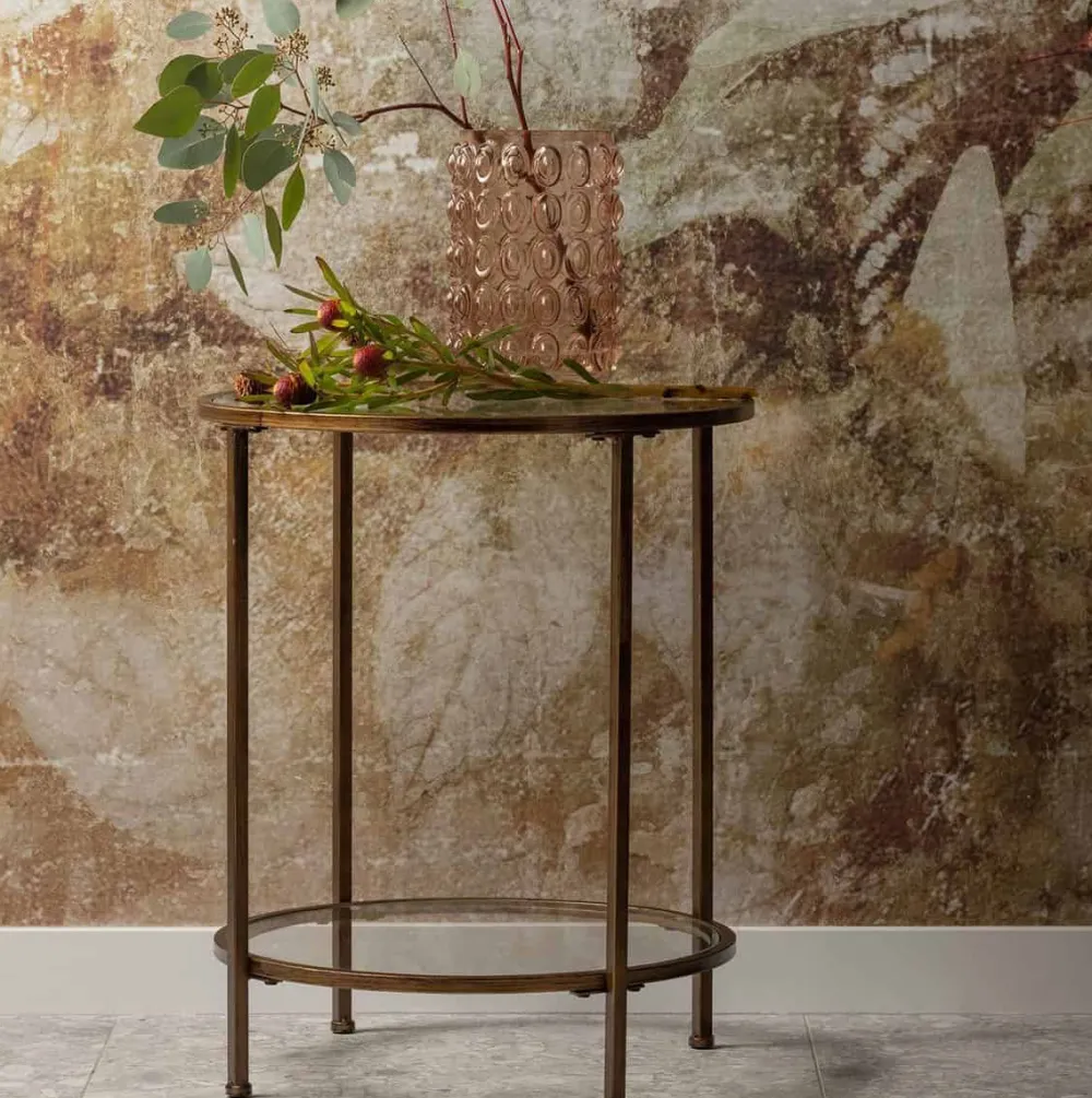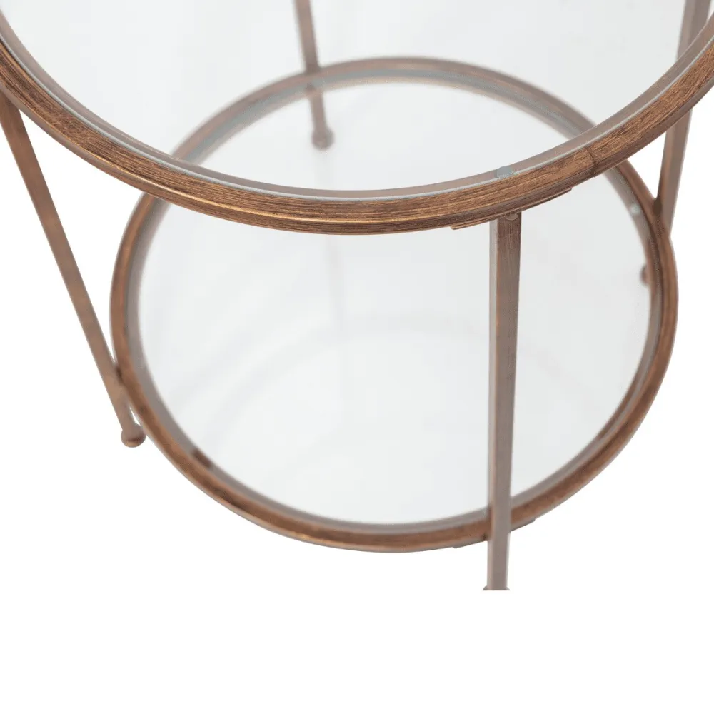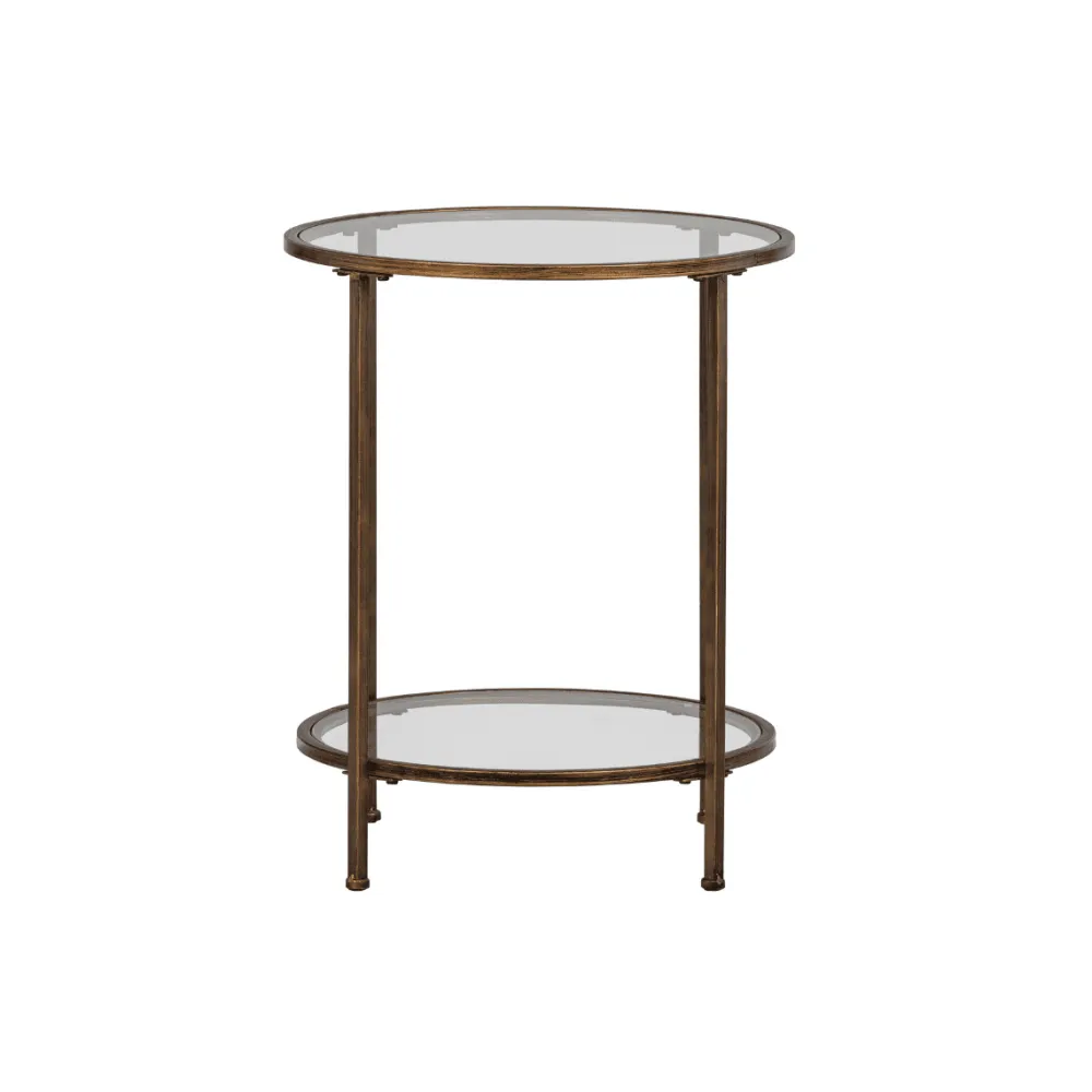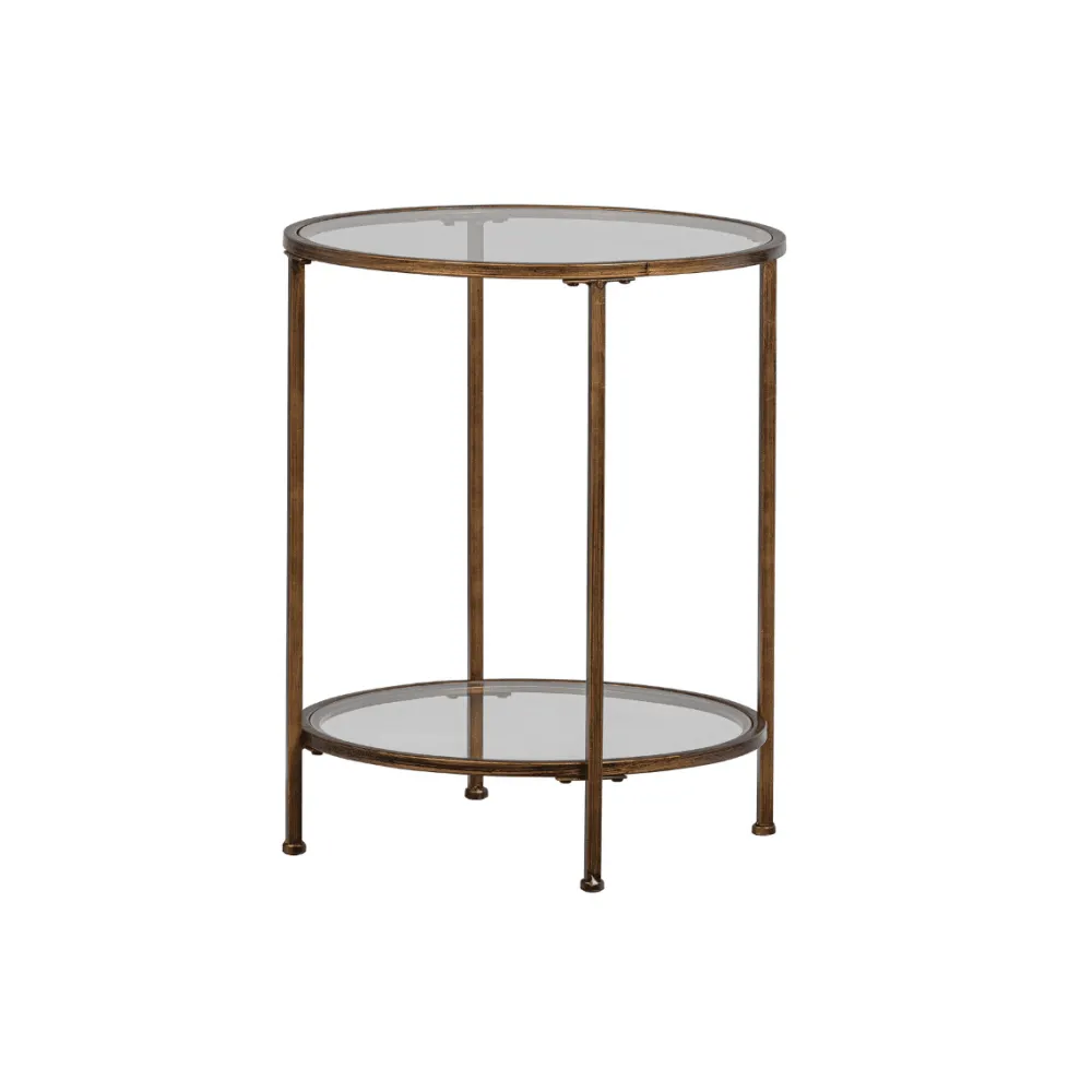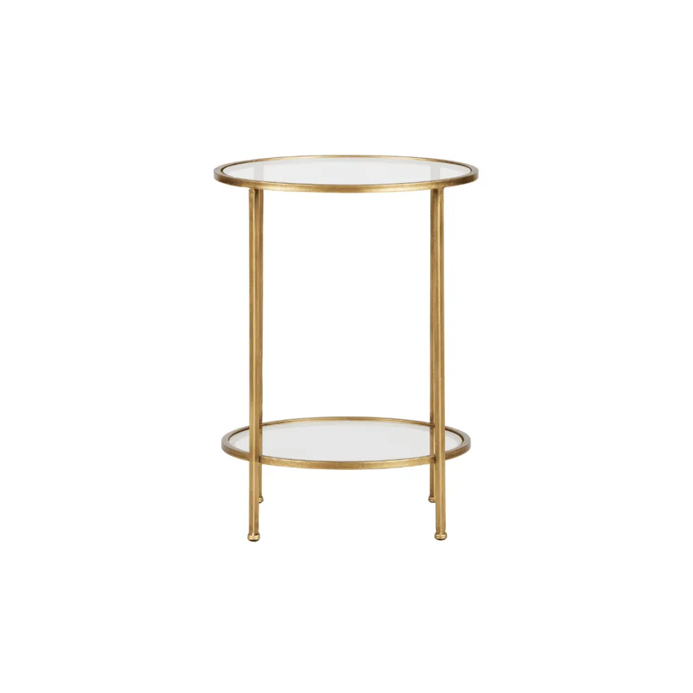 De Goddess doet haar naam eer aan. De bijzettafel heeft een echte luxueuze uitstraling dankzij de antique brass afwerking van het metaal en de twee glazen tafelbladen. De afmeting maakt dat de bijzettafel op verschillende plaatsen in het interieur kan worden toegevoegd. De planken ogen door het transparante glas luchtig.