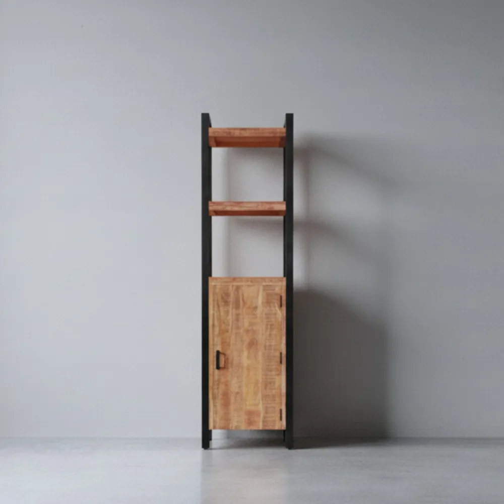 Boekenkast Britt is een stijlvolle en functionele toevoeging aan je interieur, ontworpen voor wie houdt van stoere materialen en een strak lijnenspel. De kast is gemaakt van mango hout in combinatie met zwart metaal, wat zorgt voor een robuuste en industriële uitstraling. De open vakken bieden ruimte voor boeken, decoratie of planten. De kast is verkrijgbaar in twee variaties: met een houten deur voor gesloten opbergruimte of met drie lades voor het opbergen van kleinere items. Boekenkast Britt is onderdeel van de meubelserie Britt, waarmee je eenvoudig een samenhangend interieur creëert.