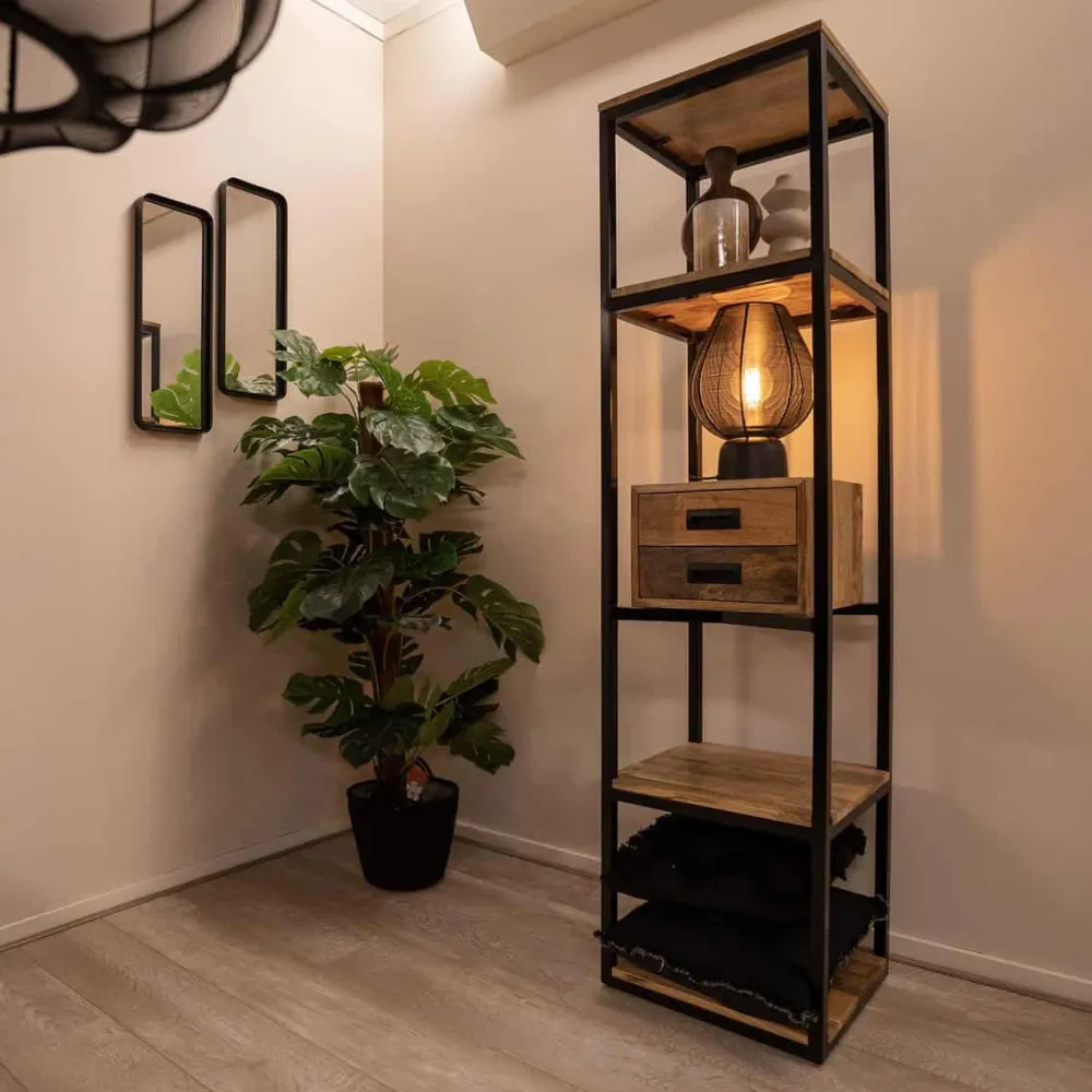 Gemaakt van hoogwaardig mangohout, heeft boekenkast Sem een warme en unieke uitstraling. Mangohout is een levendig materiaal, waardoor elke kast zijn eigen karakter heeft. Naast de stijl voegt het ook een flinke dosis functionaliteit toe, met genoeg ruimte voor boeken, decoraties of andere spullen.