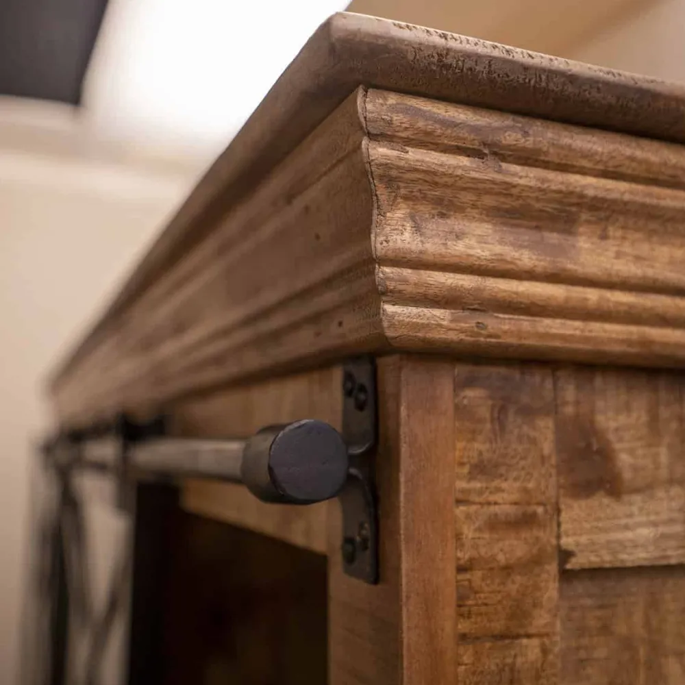 Mangohout is een natuurlijk en levendig materiaal, elk exemplaar heeft zijn eigen unieke tekening en kleur. Voor het behoud van het hout en bescherming tegen vuil en kringen raden we aan om een meubelolie mee te bestellen. Zo blijft je buffetkast jarenlang in topconditie.