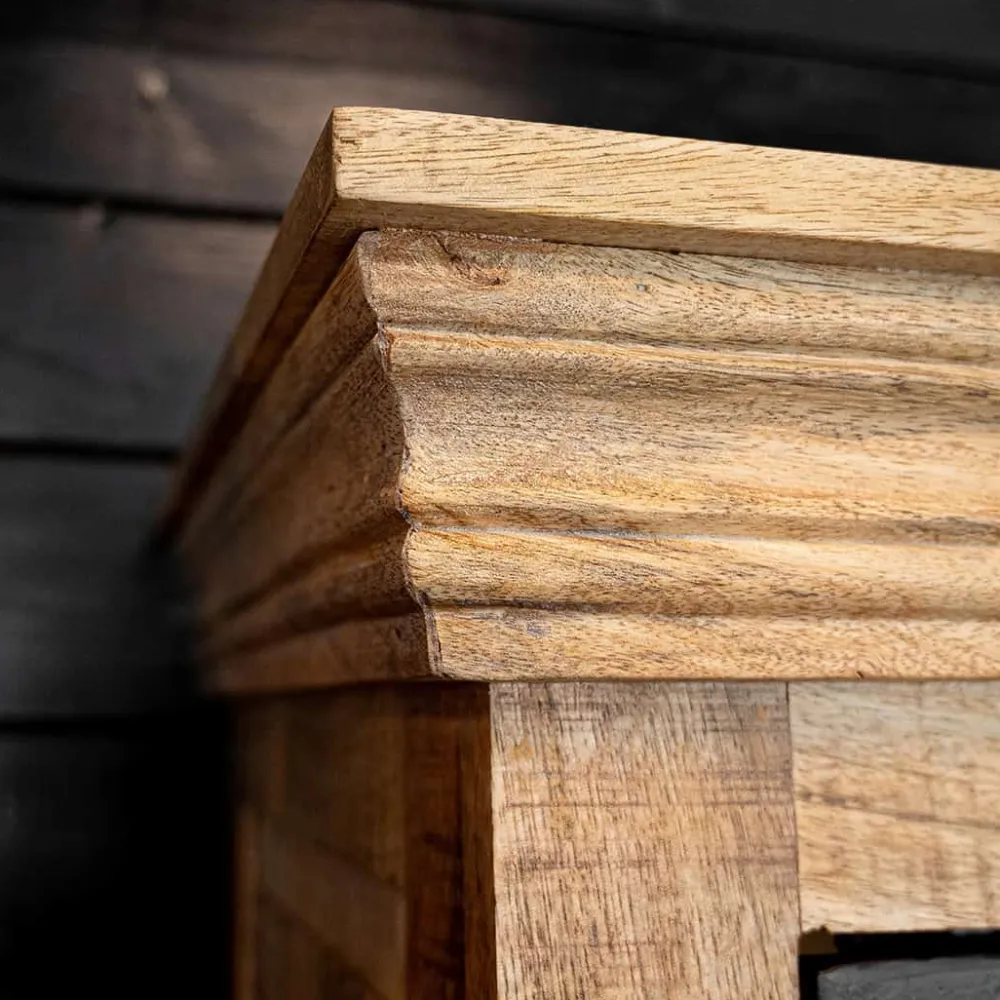 Omdat mangohout kan uitzetten of krimpen, raden we aan de kast regelmatig te behandelen met meubelolie. Dit helpt om het hout te onderhouden en beschermt de kast, zodat je er jarenlang van kunt genieten.