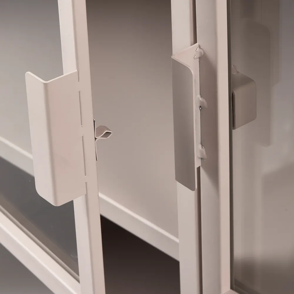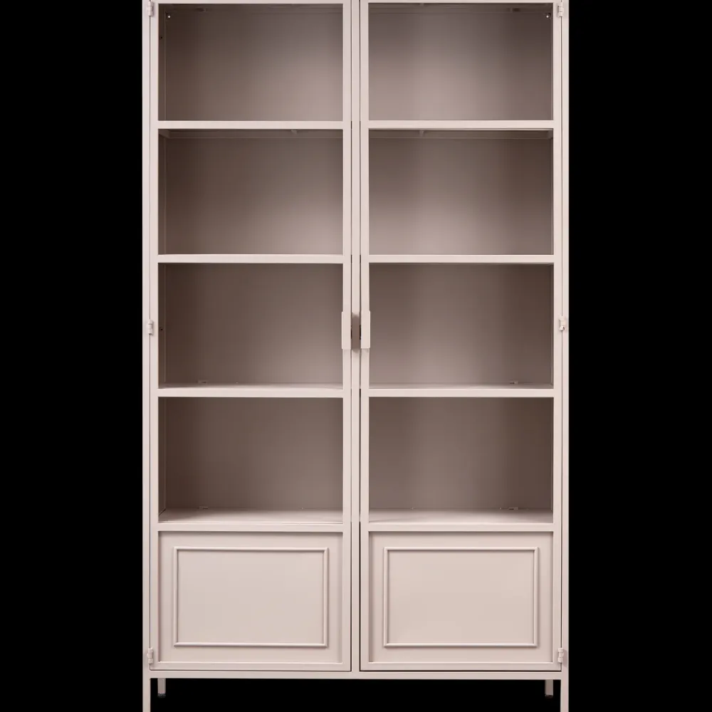 Deze romantische vitrinekast komt uit de collectie van het Nederlandse interieurmerk WOOOD en oogt zeer luchtig door het iets hogere potenframe. De Ronja XL vitrinekast heeft een speelse kleurtint en deels transparante vitrinedeuren, klaar voor het presenteren van jouw mooiste accessoires.