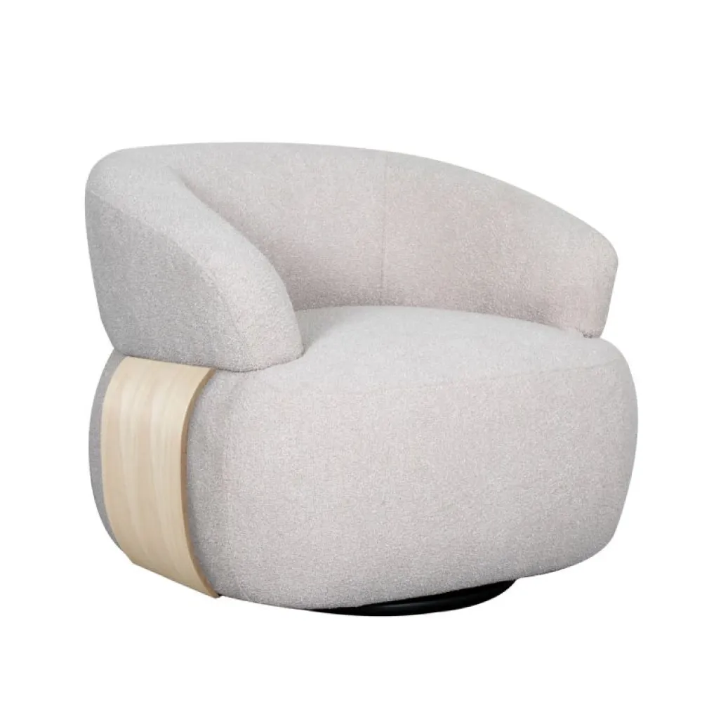 Draaifauteuil Valenza van LABEL51 is een stijlvolle en eigentijdse fauteuil die moeiteloos past in diverse interieurstijlen. De fauteuil is bekleed met zachte Naturel Touch stof en heeft moderne, ronde vormen die gecombineerd worden met een robuuste basis. Het luxe houten detail aan de zijkant geeft Valenza een warme en verfijnde uitstraling, perfect als blikvanger in de woonkamer, slaapkamer of kantoorruimte. Dankzij het comfortabele ontwerp en het 360 graden draaisysteem geniet je van optimale flexibiliteit en ondersteuning, ideaal om te loungen of te lezen in een sfeervolle setting.