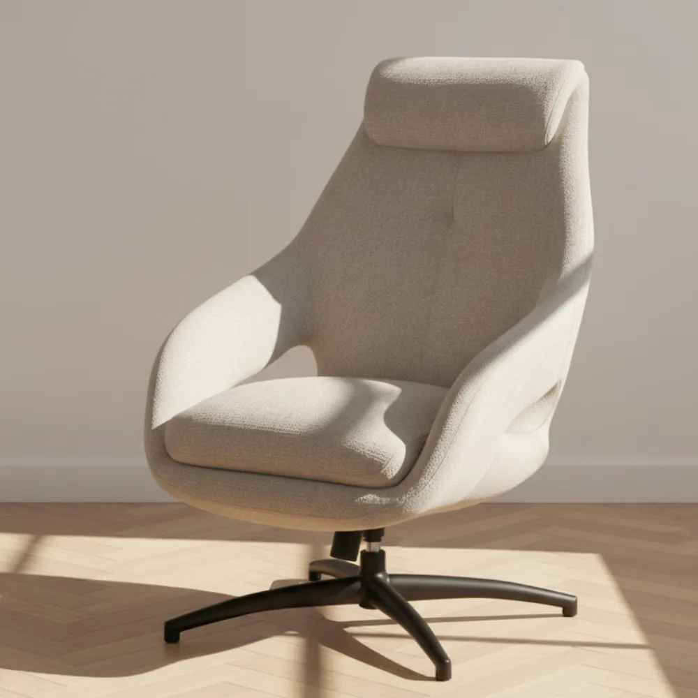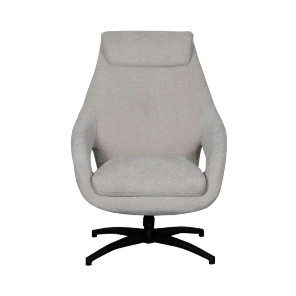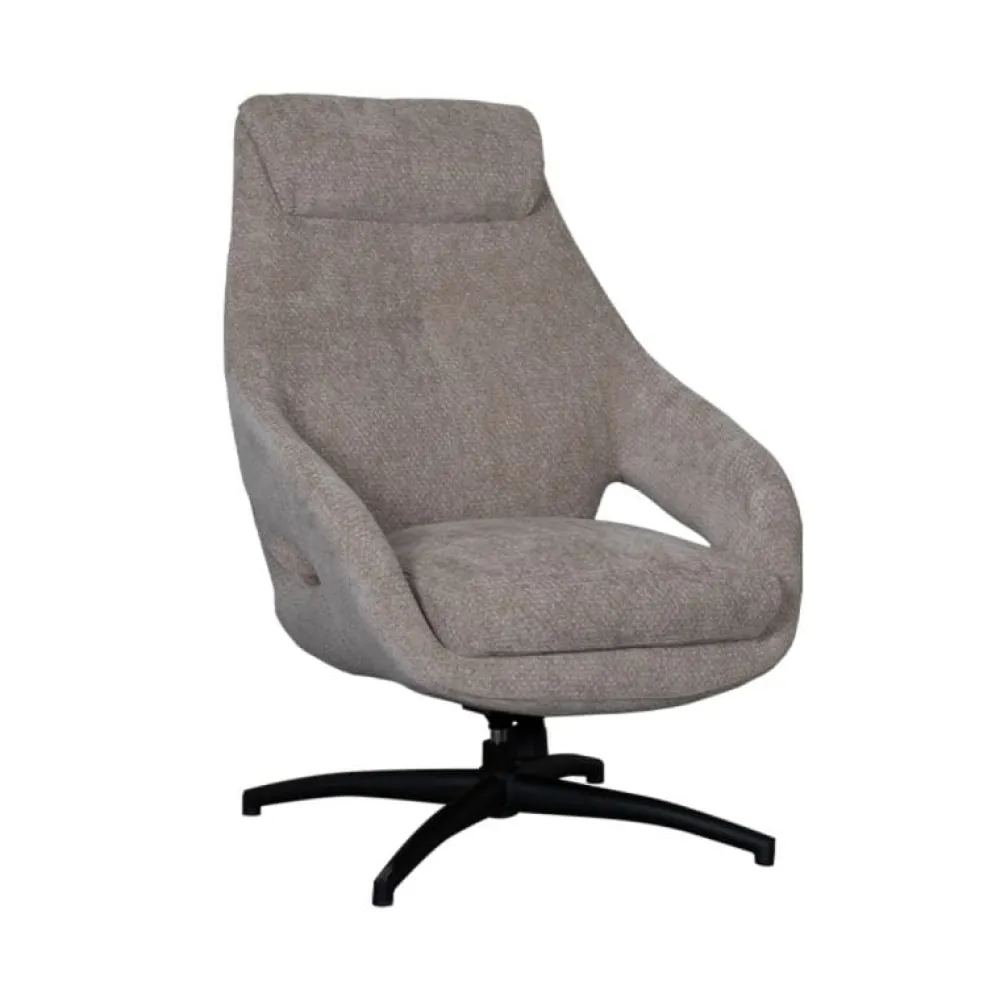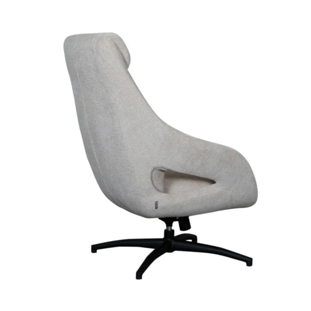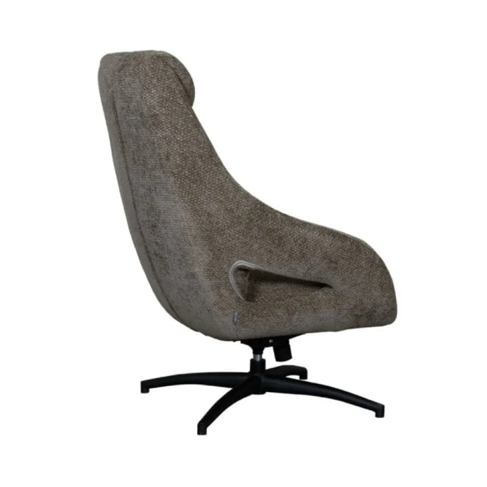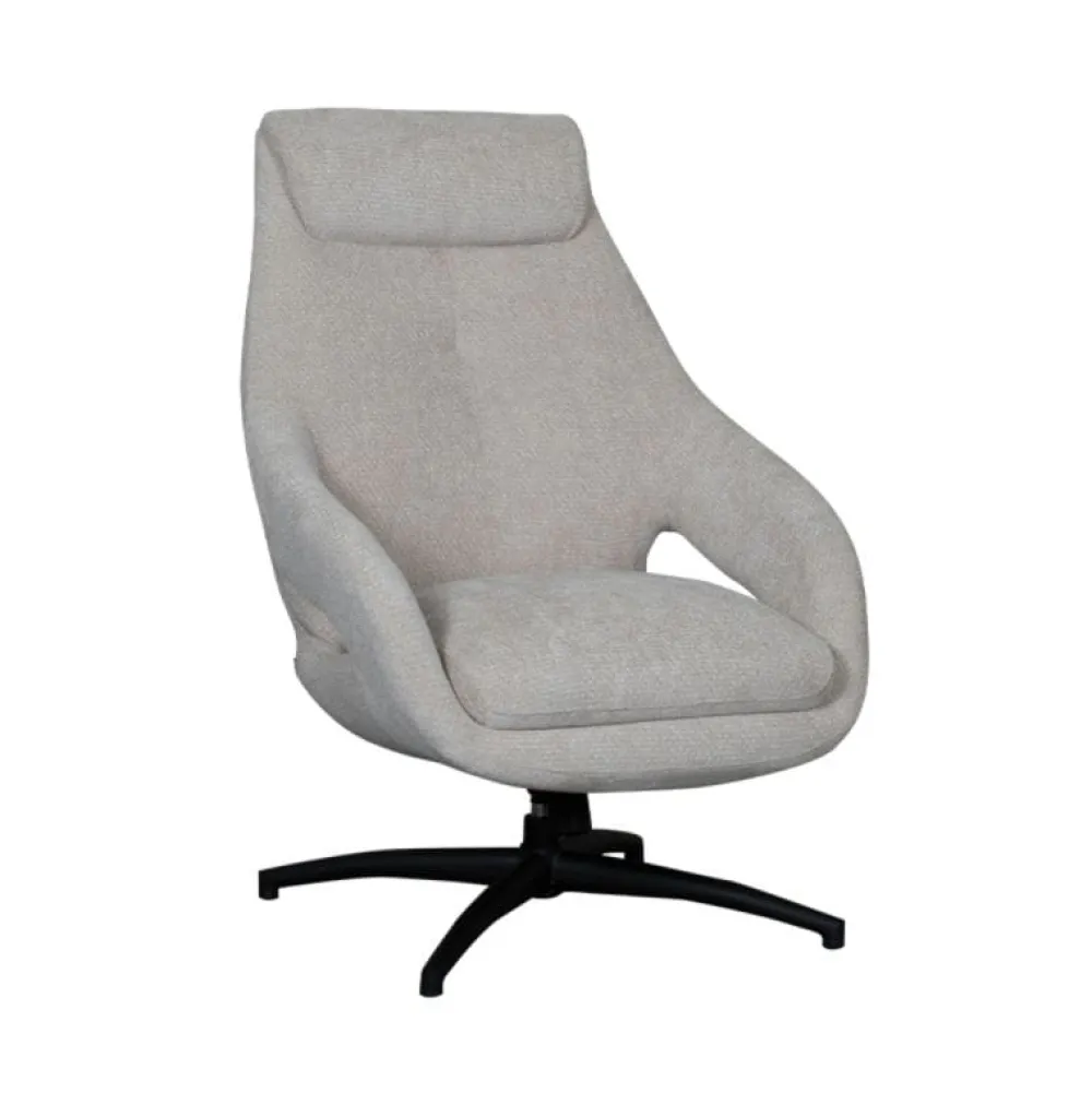 Fauteuil Maxwell is een verfijnde draaifauteuil die comfort en design perfect combineert. Uitgevoerd in de stijlvolle Elite-stof straalt Maxwell luxe en elegantie uit, met zijn hoge rugleuning, geïntegreerde hoofdsteun en vloeiend gevormde armleuningen. De subtiele textuur van de stof en de strakke belijning maken deze fauteuil tot een moderne blikvanger in elk interieur. Dankzij de royale zitting, ergonomische vormgeving en het solide zwart metalen onderstel biedt Maxwell een stabiele en comfortabele zit. Extra bijzonder is de instelbare kantelfunctie met draaiknop, waarmee je de stoel volledig afstemt op jouw zitvoorkeur – van actief tot ultiem relaxen.