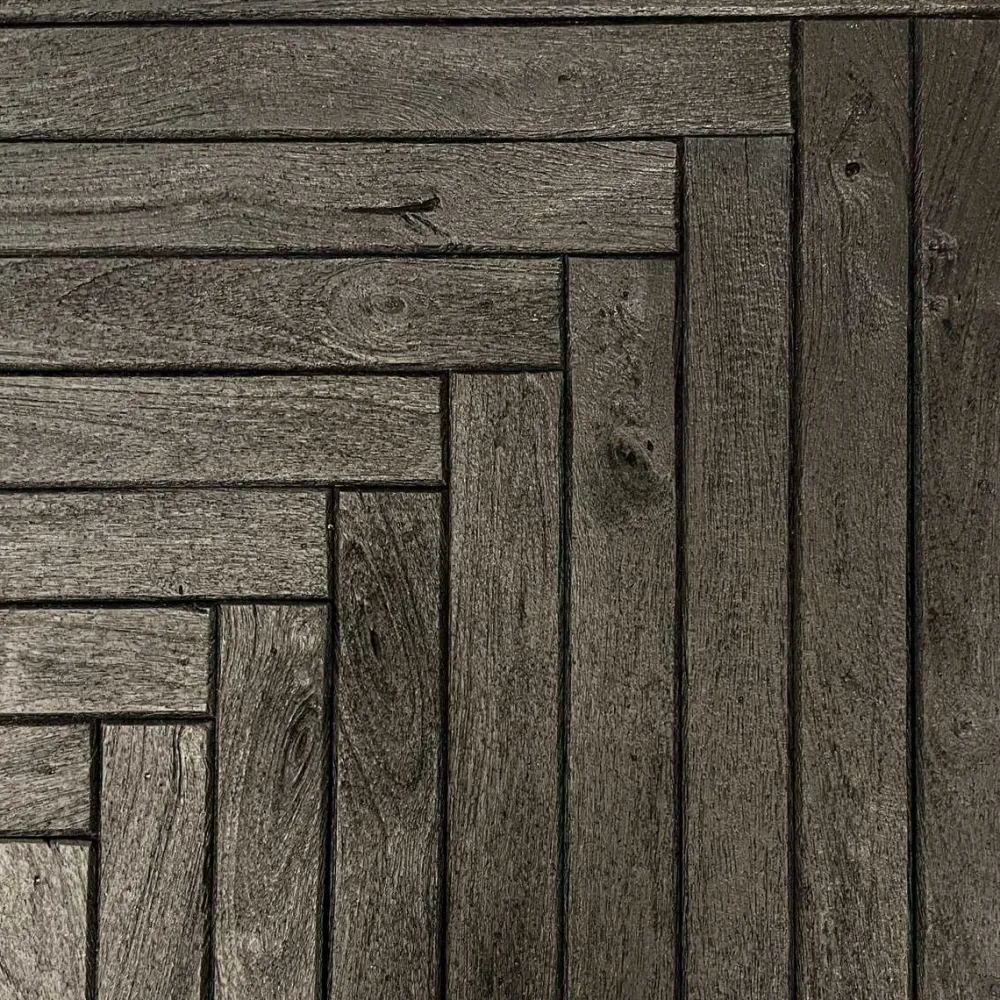 Het zwarte mangohout geeft Dressoir Floor een tijdloze uitstraling die goed past in verschillende interieurstijlen. Het visgraat patroon voegt een subtiele maar elegante twist toe, waardoor het dressoir niet alleen praktisch is, maar ook een statement piece in je woonkamer.