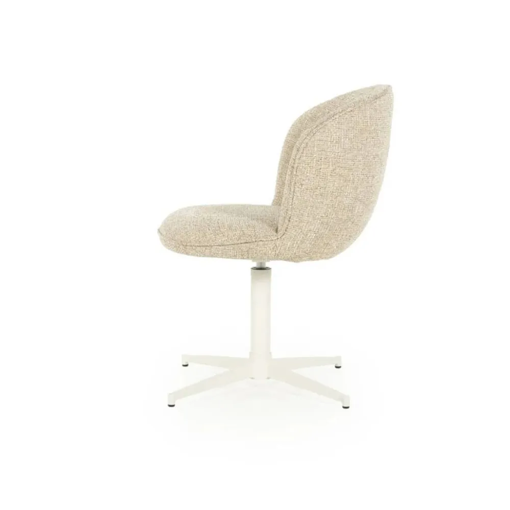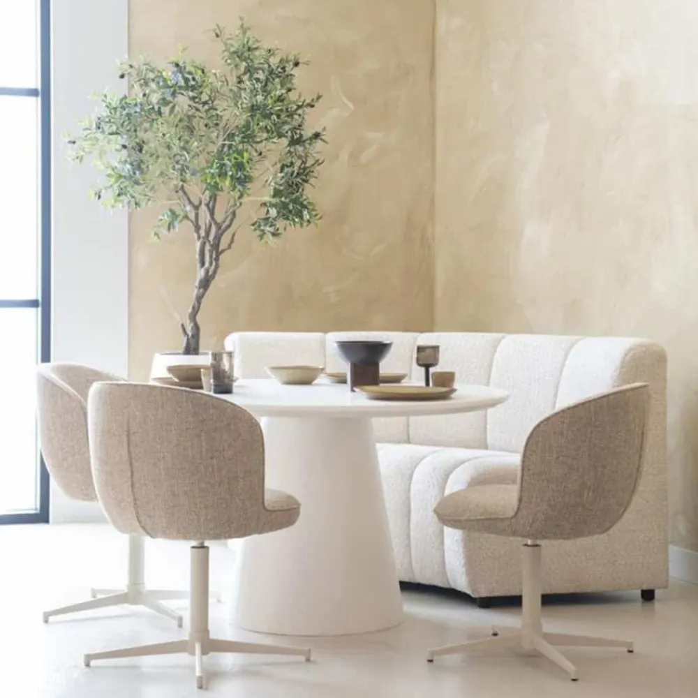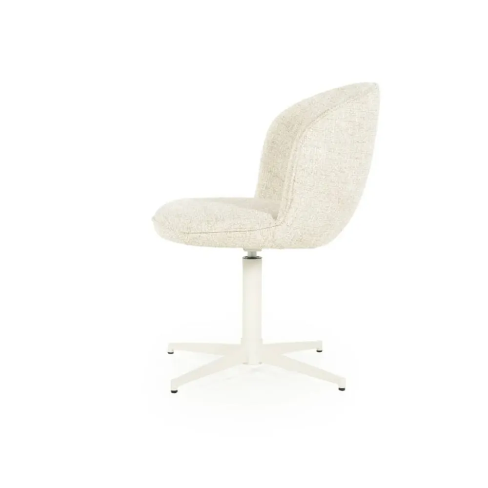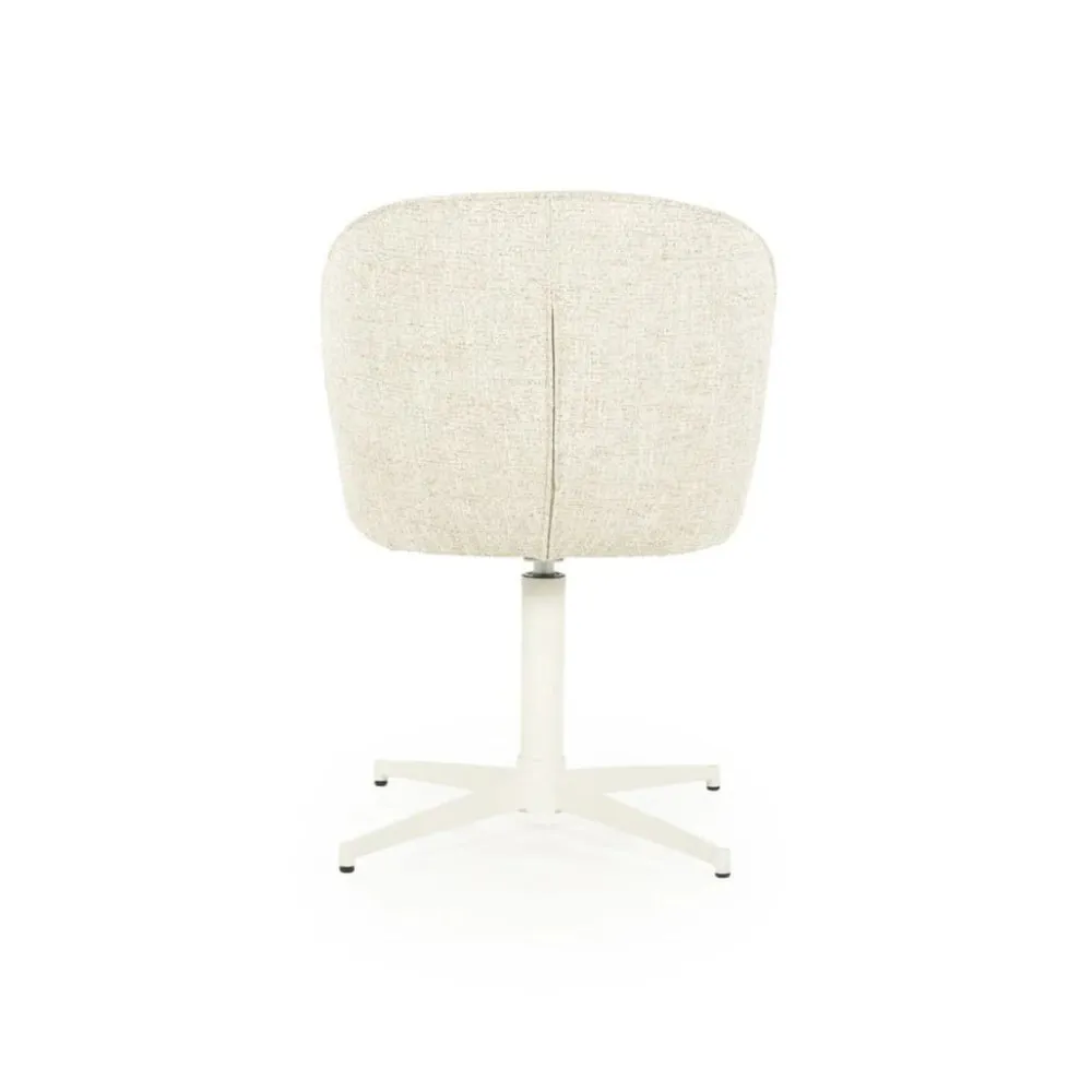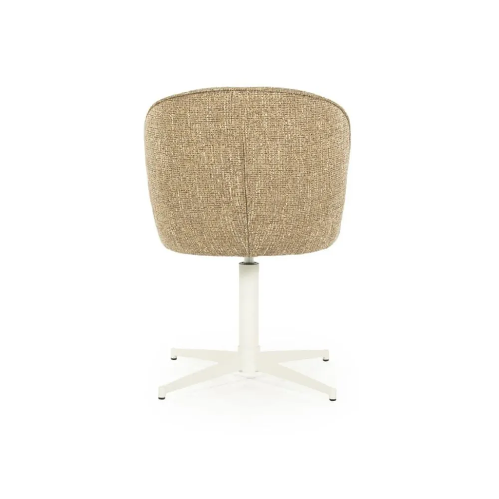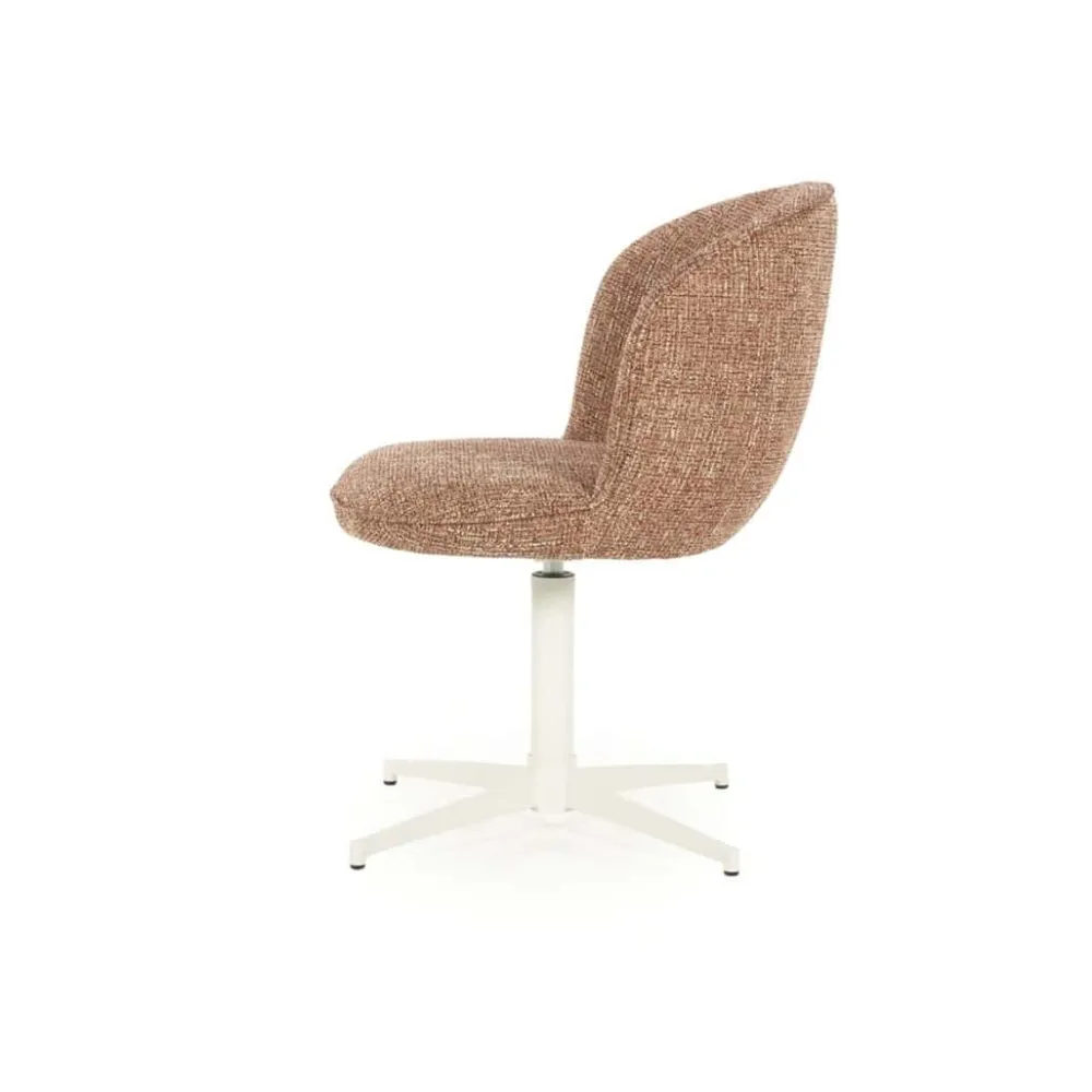 Eetkamerstoel Molly van Eleonora is een moderne en elegante draaistoel die stijl en comfort moeiteloos combineert. De volledig gestoffeerde kuipzitting heeft een zachte, ronde vorm en is verkrijgbaar in vier warme kleuren: taupe, beige, rood en mustard. Het zwarte metalen onderstel met poedercoating zorgt voor een stabiele basis en een luchtige uitstraling dankzij de open ruimte onder de zitting. Dankzij de 360 graden draaifunctie is Molly niet alleen een blikvanger aan tafel, maar ook bijzonder praktisch in gebruik.