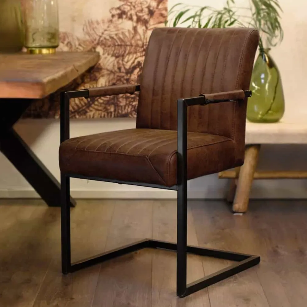 De Eetkamerstoel België met armleuning van HUUS combineert een robuust metalen frame met een comfortabele zitting bekleed met onderhoudsvriendelijk PU-leder. Met zijn strakke lijnen en industriële uitstraling past deze stoel perfect in zowel moderne als industriële interieurs. De stoel is verkrijgbaar in de kleuren antraciet, cognac, donkerbruin en groen, waardoor hij eenvoudig te combineren is met diverse kleurenschema’s. Met een zithoogte van 51 cm, een zitdiepte van 44 cm en armleuningen op 67 cm hoogte biedt de stoel optimaal zitcomfort. Let op: de Eetkamerstoel België met armleuning is alleen per set van 2 stuks te bestellen.