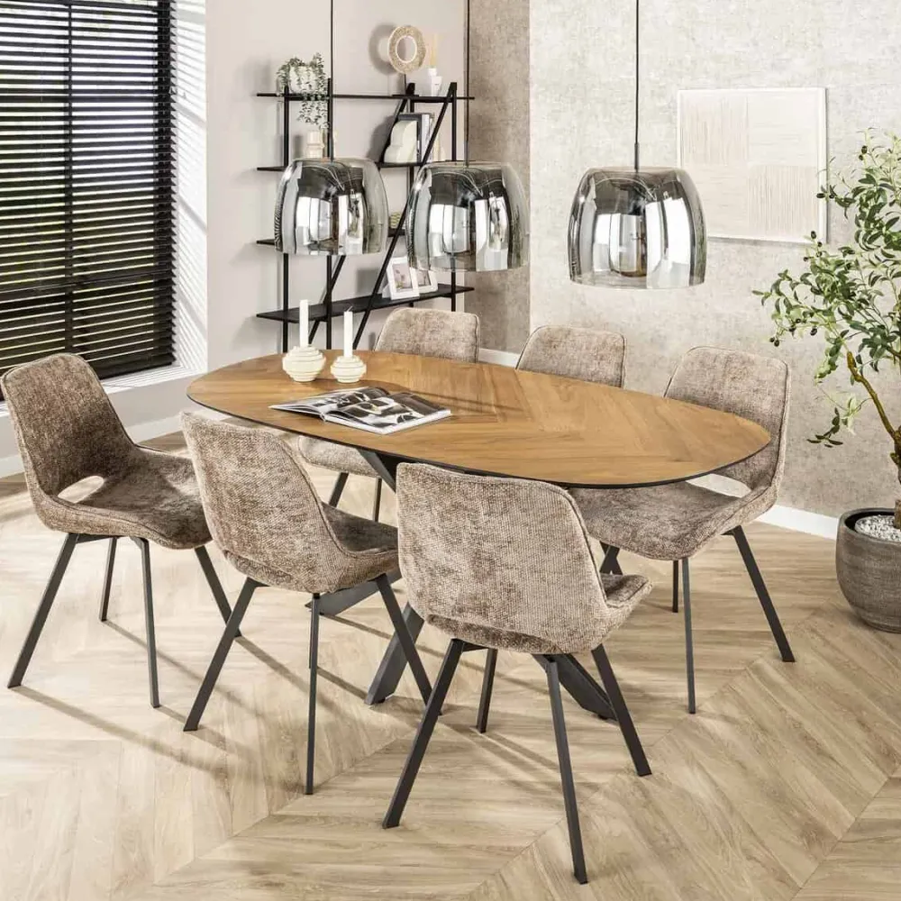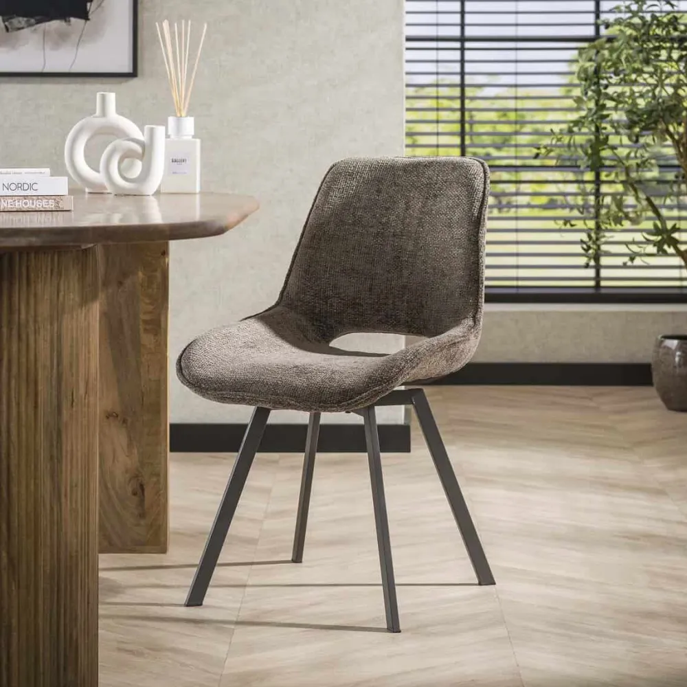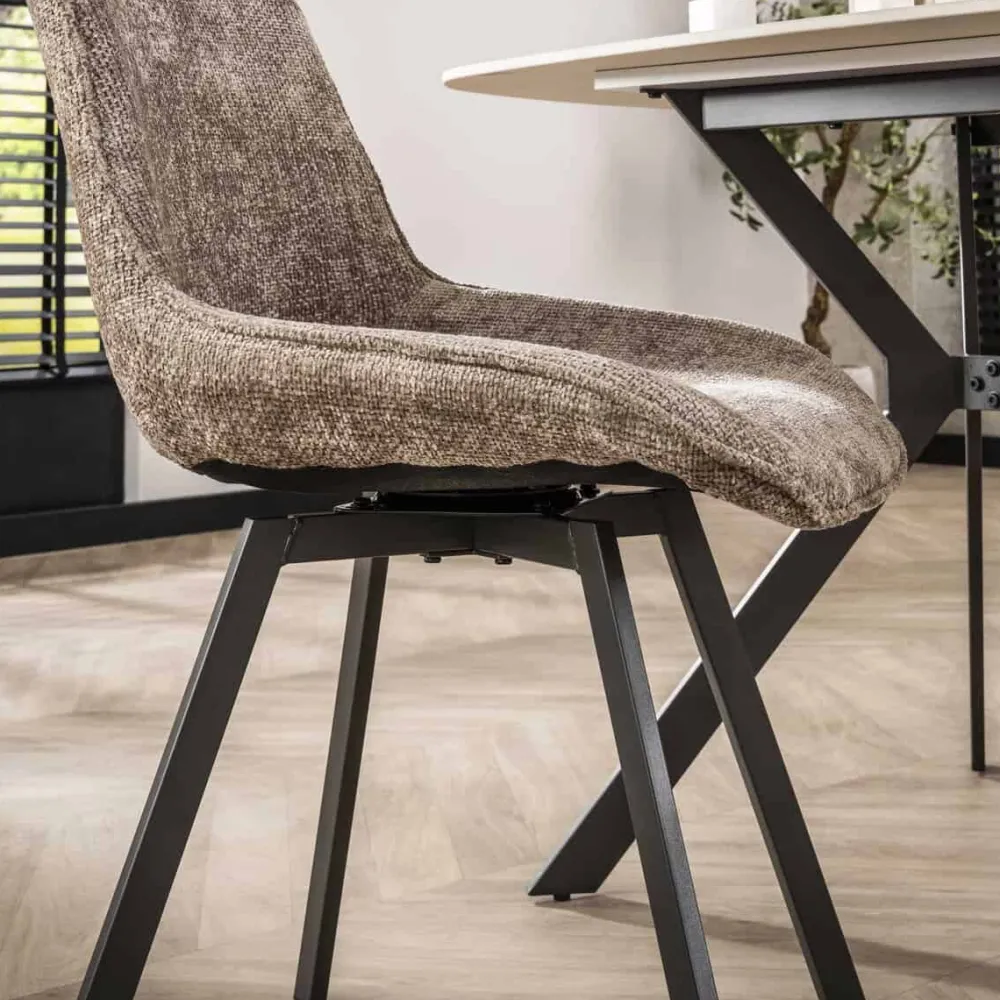 Eetkamerstoel Daniels is een moderne draaistoel met een stijlvolle en functionele vormgeving. De zitting is bekleed met een grof geweven chenille stof die warmte en textuur toevoegt aan je interieur. Het onderstel is uitgevoerd in gepoedercoat staal in de kleur antraciet, wat de stoel een strakke en eigentijdse uitstraling geeft. Dankzij het draaibare ontwerp biedt Daniels extra flexibiliteit en gebruiksgemak. De stoel heeft geen armleuningen, waardoor hij moeiteloos onder elke eettafel schuift. Daniels wordt geleverd per vier stuks.
