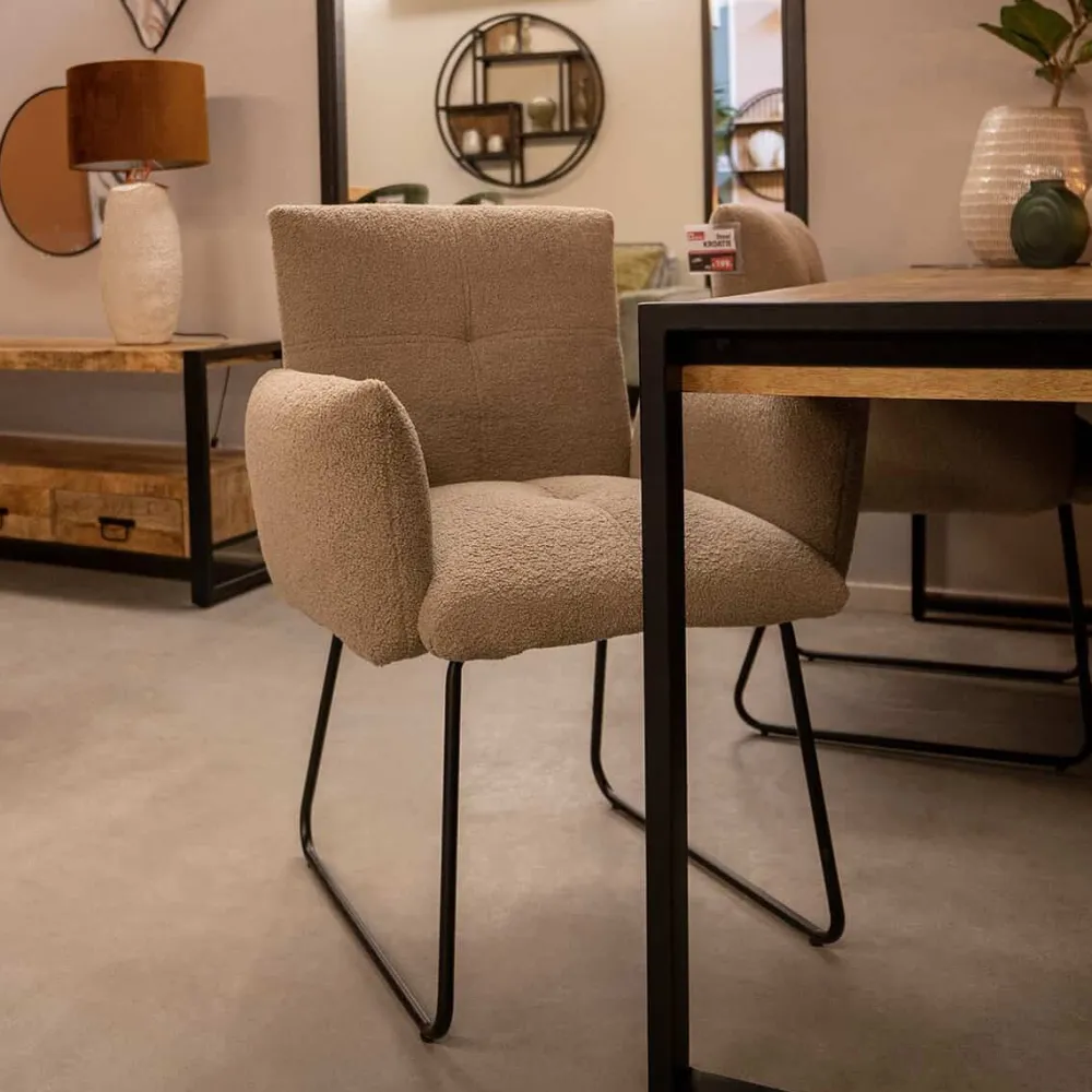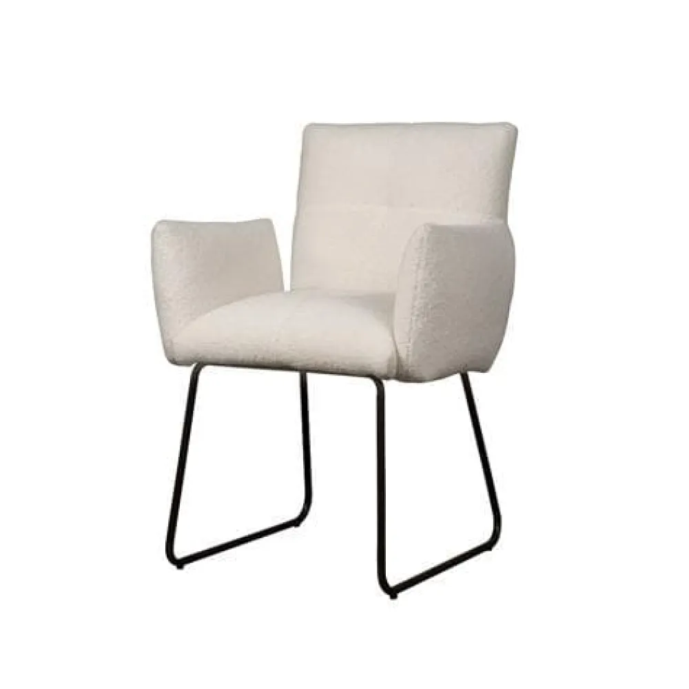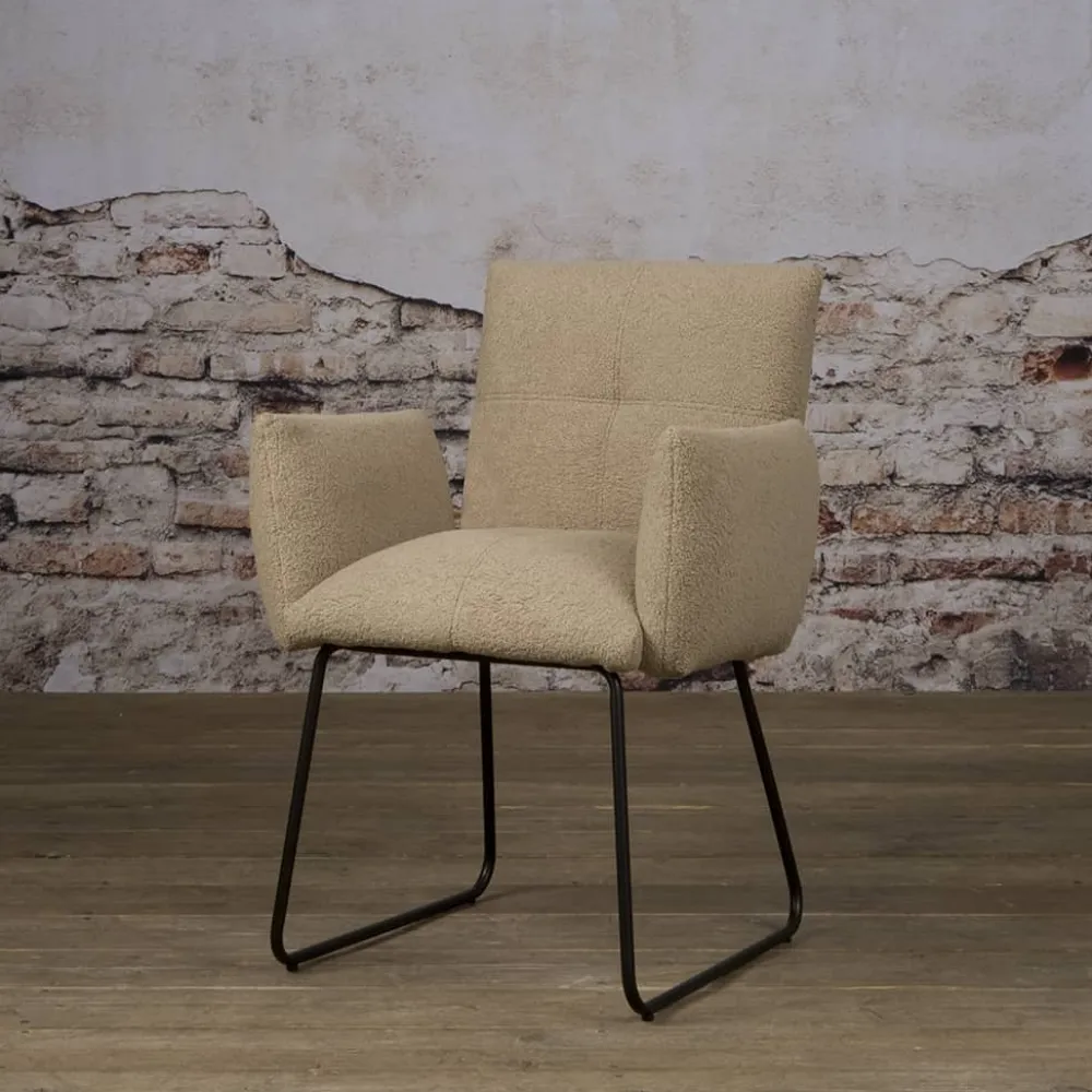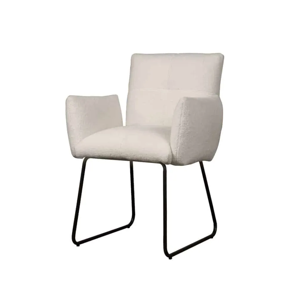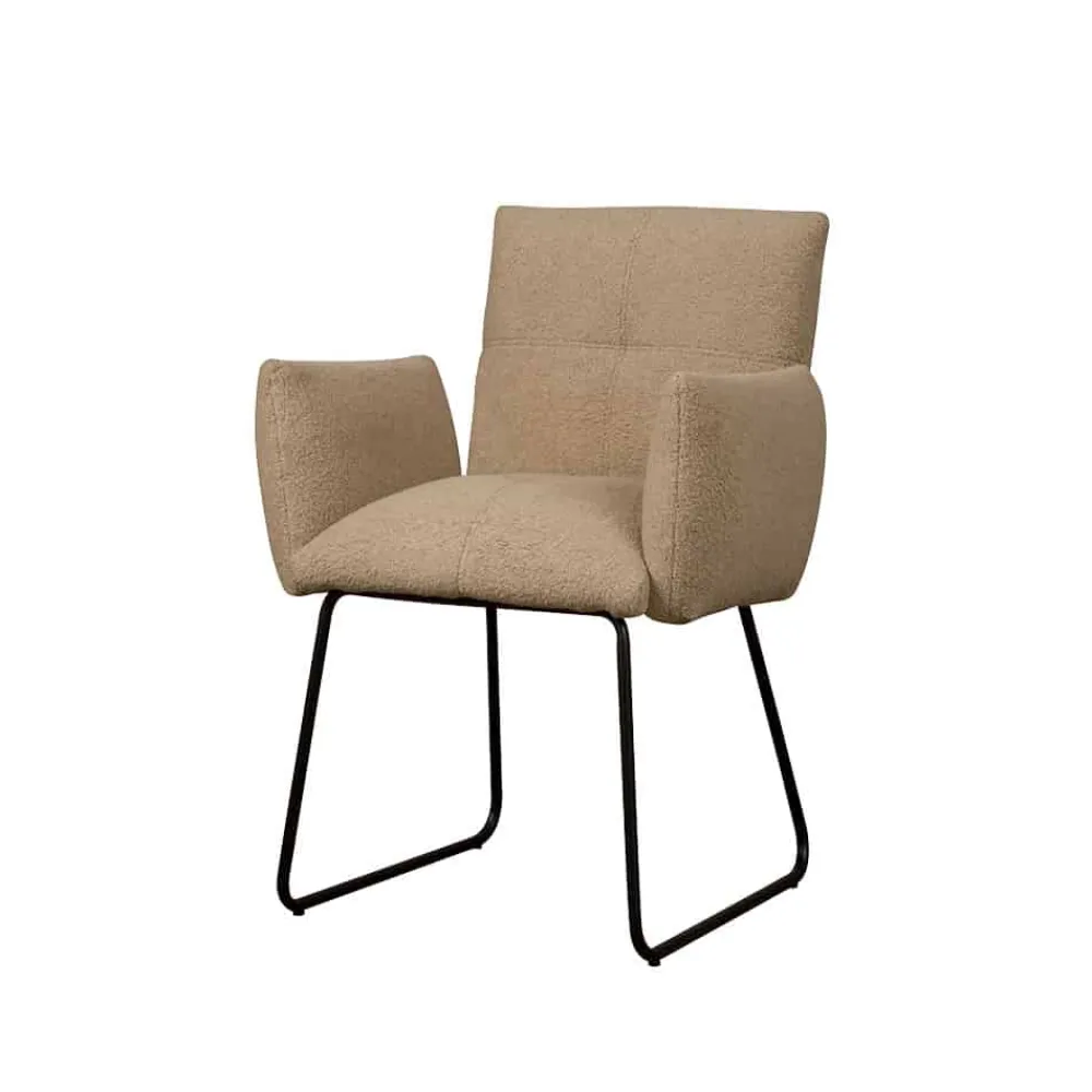 Eetkamerstoel Kroatië is een stoere en comfortabele stoel met een uitgesproken industriële uitstraling. De zitting is bekleed met sterke microvezelstof en voorzien van decoratieve verticale stiknaden in de rugleuning, wat de stoel een krachtig detail geeft. De vaste armleuningen zorgen voor extra steun, terwijl het zwarte metalen sledeframe een stabiele basis biedt en zorgt voor een licht verend zitcomfort. Kroatië is verkrijgbaar in antraciet, cognac en zwart en past perfect in een robuust en eigentijds interieur.