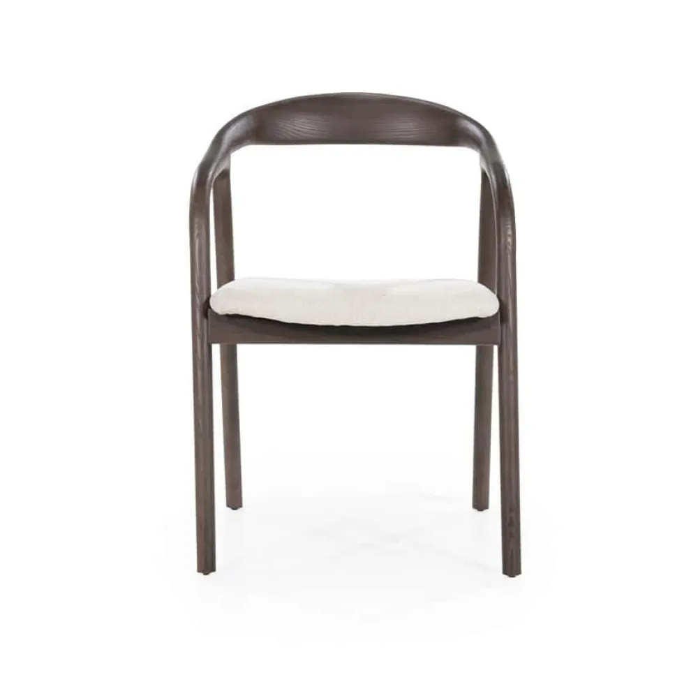 Eetkamerstoel Rayven van Eleonora is een elegante armstoel met een natuurlijke uitstraling en hoogwaardige afwerking. De zitting is bekleed met een zachte, geweven stof en rust in een stevig frame van massief essenhout. Dankzij de afgeronde armleuningen en licht gebogen rugleuning biedt Rayven een prettige ondersteuning. De stoel is verkrijgbaar in twee tijdloze kleuren — naturel en bruin — en past perfect binnen Scandinavische, Japandi of moderne interieurs. Met een zithoogte van 47,5 cm en armleuninghoogte van 69 cm is Rayven ideaal voor comfortabel tafelen. De stoel wordt ongemonteerd geleverd, maar is eenvoudig zelf in elkaar te zetten.