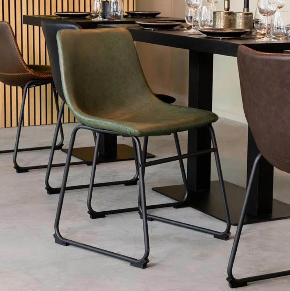 Eetkamerstoel Risto van LABEL51 is een stijlvolle en moderne toevoeging aan je interieur of horecagelegenheid. Deze stoel heeft een strakke en minimalistische uitstraling, met een comfortabel gevormde zitting die bekleed is met hoogwaardig hunter Kunstleder. De warme kleur van de zitting in combinatie met het slanke, zwarte metalen frame zorgt voor een industriële uitstraling die perfect aansluit bij diverse interieurstijlen.