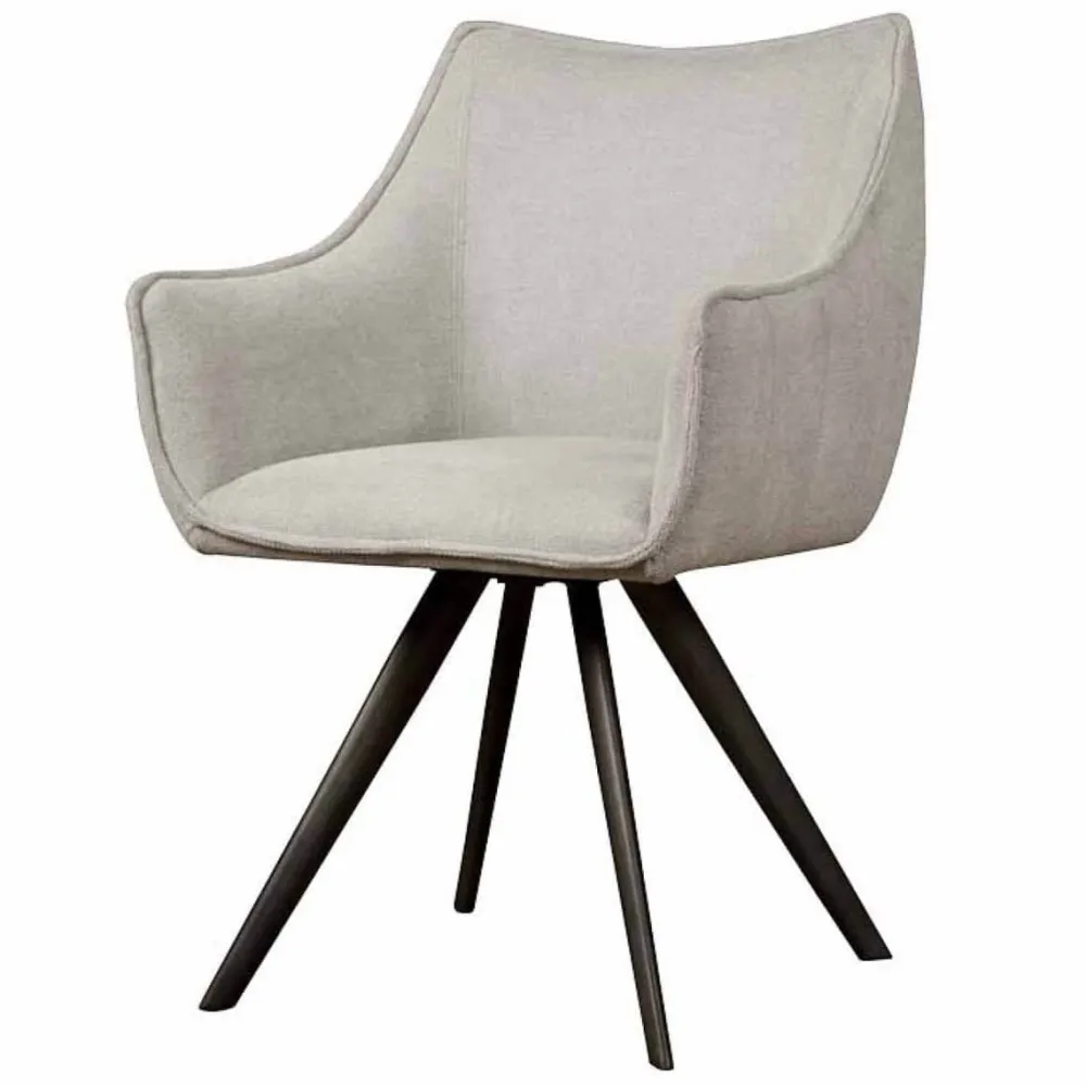 Eetkamerstoel Riviera is een stijlvolle draaistoel die elegantie en comfort samenbrengt. De ergonomisch gevormde kuip is bekleed met luxe textiel en voorzien van verfijnde stikdetails. Het zwarte metalen onderstel geeft de stoel een moderne uitstraling, terwijl de geïntegreerde armleuningen zorgen voor extra comfort. Riviera is uitgevoerd met een 180 graden draaifunctie en automatische terugkeer, wat zorgt voor extra gebruiksgemak. De stoel is verkrijgbaar in drie grijstinten en wordt geleverd per twee stuks.
