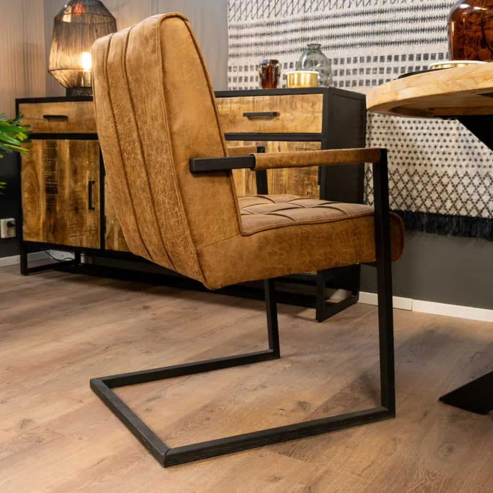 De Eetkamerstoel Two van de HUUS Premium collectie combineert een luxe uitstraling met praktisch comfort. Bekleed met duurzame Missouri-stof, een hoogwaardige imitatieleer met een subtiel licht-donker effect, straalt deze stoel elegantie uit. Het metalen frame zorgt voor stevigheid en een moderne touch. Met een zithoogte van 48 cm en een zitdiepte van 47 cm biedt de stoel optimaal zitcomfort, ideaal voor lange diners en gezellige avonden aan tafel. Verkrijgbaar in de kleuren antraciet, cognac en groen, past de Eetkamerstoel Two moeiteloos in diverse interieurstijlen.