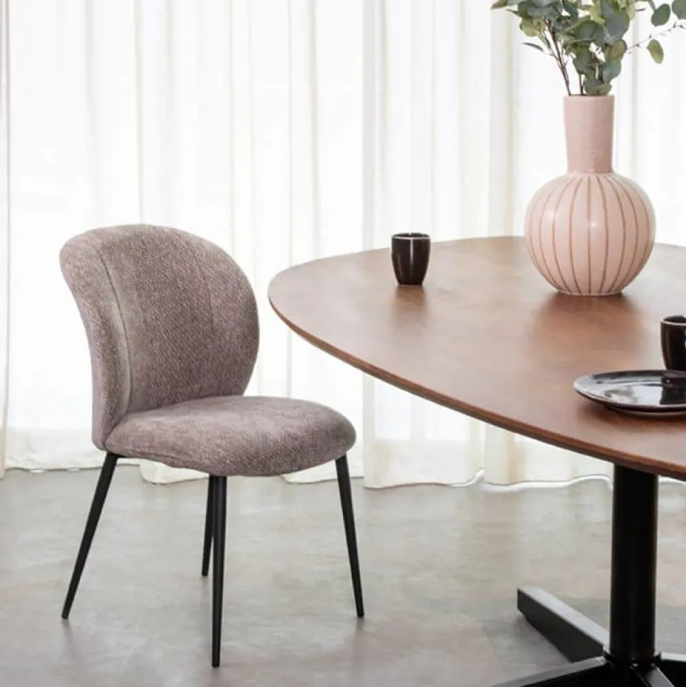 Eetkamerstoel Vino van LABEL51 is een elegante stoel met een subtiele, gebogen rugleuning en een moderne uitstraling. De stoel is bekleed met de zachte Stone Elite stof, die niet alleen warmte en verfijning uitstraalt, maar ook een comfortabele zit biedt. Het strakke metalen onderstel in zwart vormt een stijlvol contrast met de bekleding en zorgt voor stabiliteit en een eigentijdse look. Vino is verkrijgbaar in drie verschillende kleuren, waardoor je hem moeiteloos kunt afstemmen op jouw interieur.