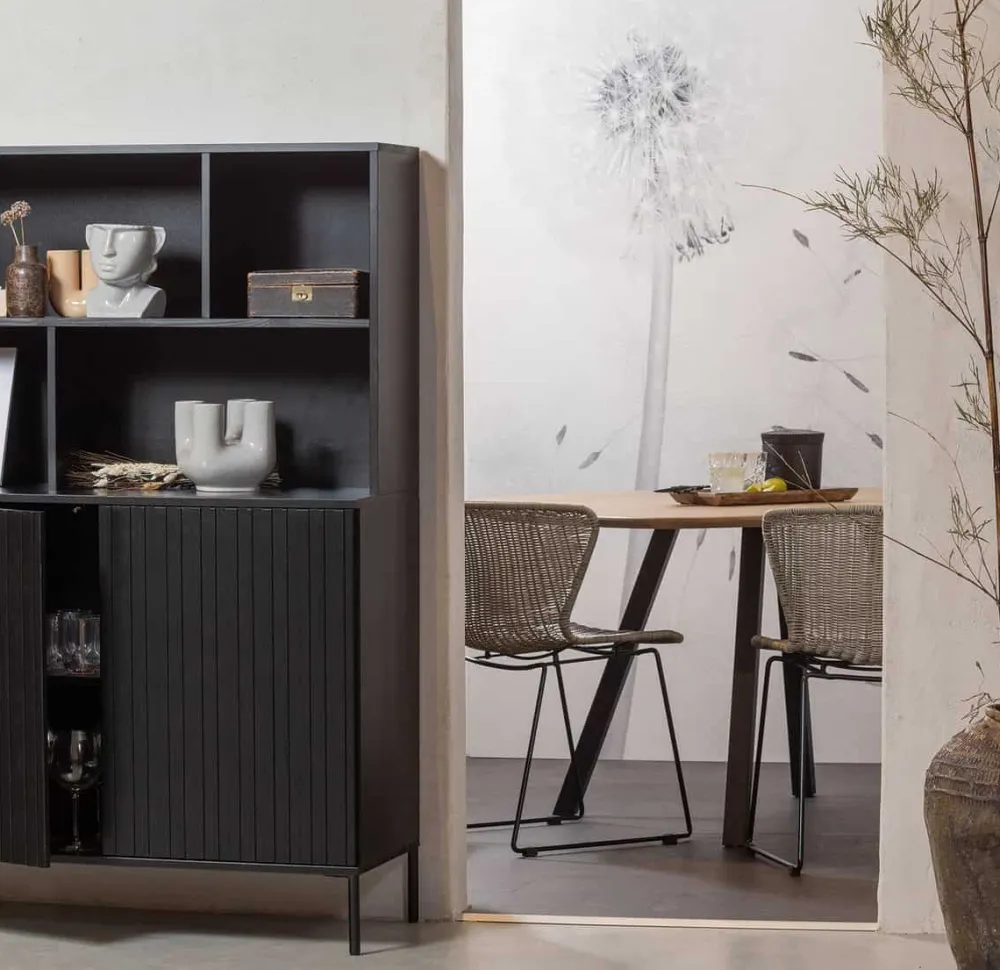 Eetkamerstoel Wings van HUUS valt op door zijn verfijnde design en natuurlijke uitstraling. De rugleuning is afgewerkt met een fraai geweven patroon dat direct karakter toevoegt aan de ruimte. Dankzij de armleuningen en comfortabele zitting is deze stoel ideaal voor lange avonden aan tafel. Het zwarte metalen frame maakt het geheel compleet. Wings wordt geleverd per set van twee en is verkrijgbaar in meerdere kleuren.