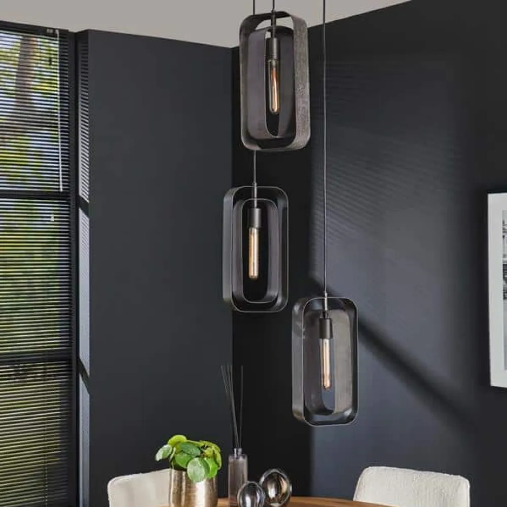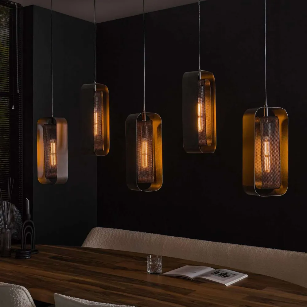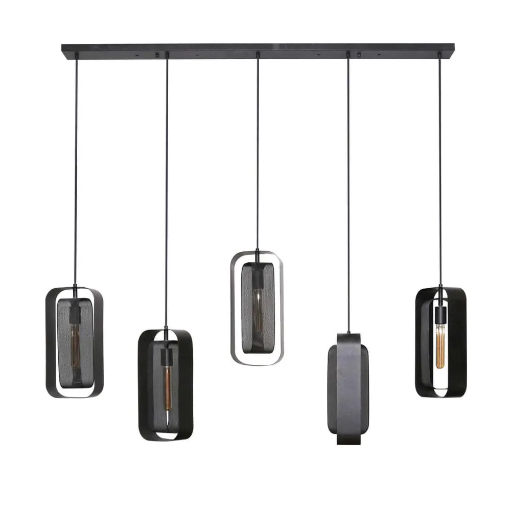 Deze hanglamp is uitgevoerd in metaal met een artic black finish. Het mesh kan naar eigen inzicht gedraaid worden, dit zorgt voor een prachtige verdeling van het licht. De kappen zijn afzonderlijk van elkaar tot 150 cm in hoogte verstelbaar. Er wordt aanbevolen LED lichtbron buis 18,5 cm te gebruiken.