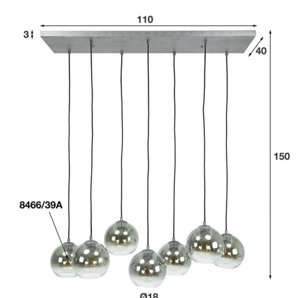 15×15, 20×20 cm, 3 lampen: 29×29 cm, 5 lampen: 13×13, 7 lampen: 18x18x18 cm