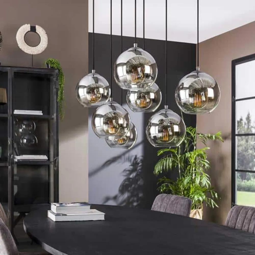 Deze hanglamp is uitgevoerd in rookglas met een prachtig verloop. Hierdoor wordt de ruimte mooi en gedoseerd verlicht. De getrapte lamp staat ideaal boven een ronde tafel, maar ook in de hoek bij de bank bijvoorbeeld. De glazen kappen kunnen gemakkelijk los gemaakt worden waardoor de lichtbronnen erin gezet kunnen worden. De lampen zijn ieder afzonderlijk tot 150 cm in hoogte verstelbaar.