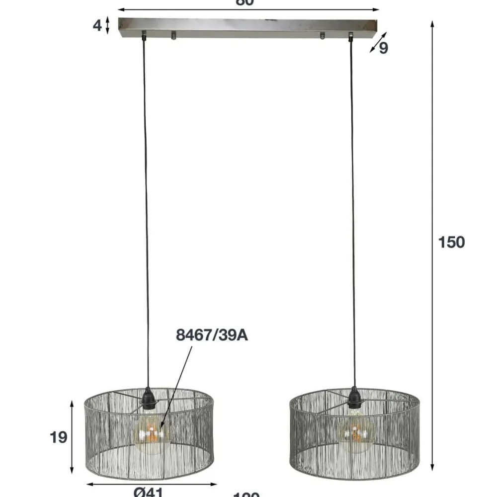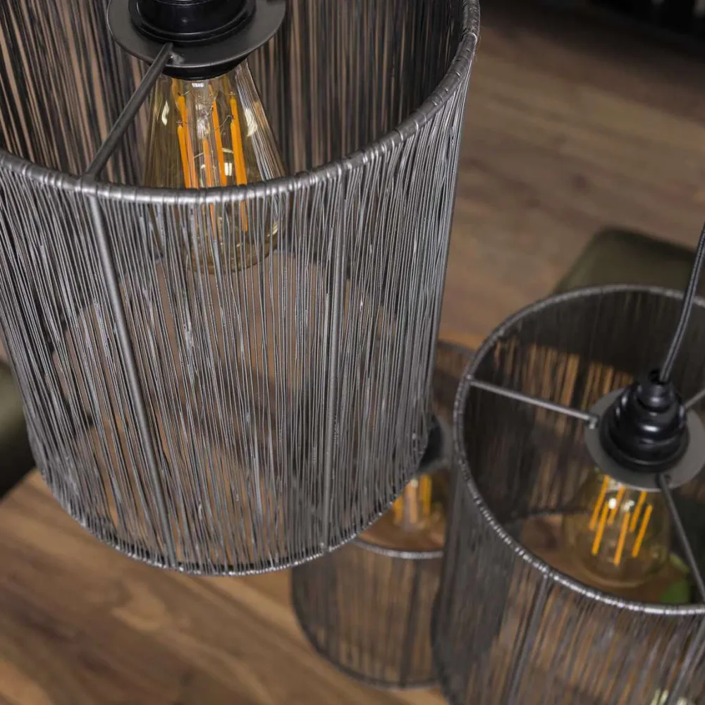 Deze trendy hanglamp is uitgevoerd in metaal. Het metaal is op een strakke manier rondom gevlochten en hierdoor wordt het licht op mooie en speelse wijze door de ruimte verdeeld. Kies voor 2 grote kappen of een getrapt model met 3 kappen. De kappen zijn ieder afzonderlijk tot 150 cm in hoogte verstelbaar.