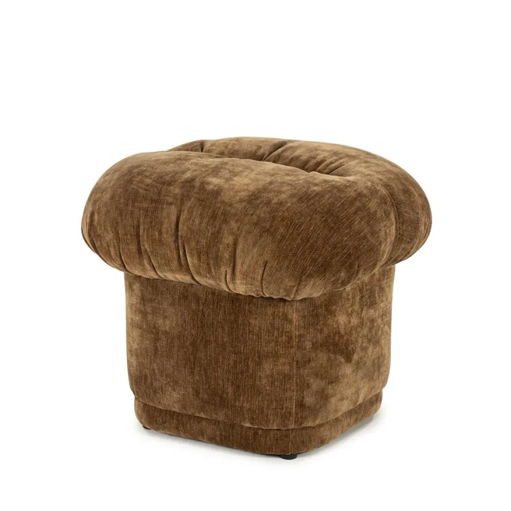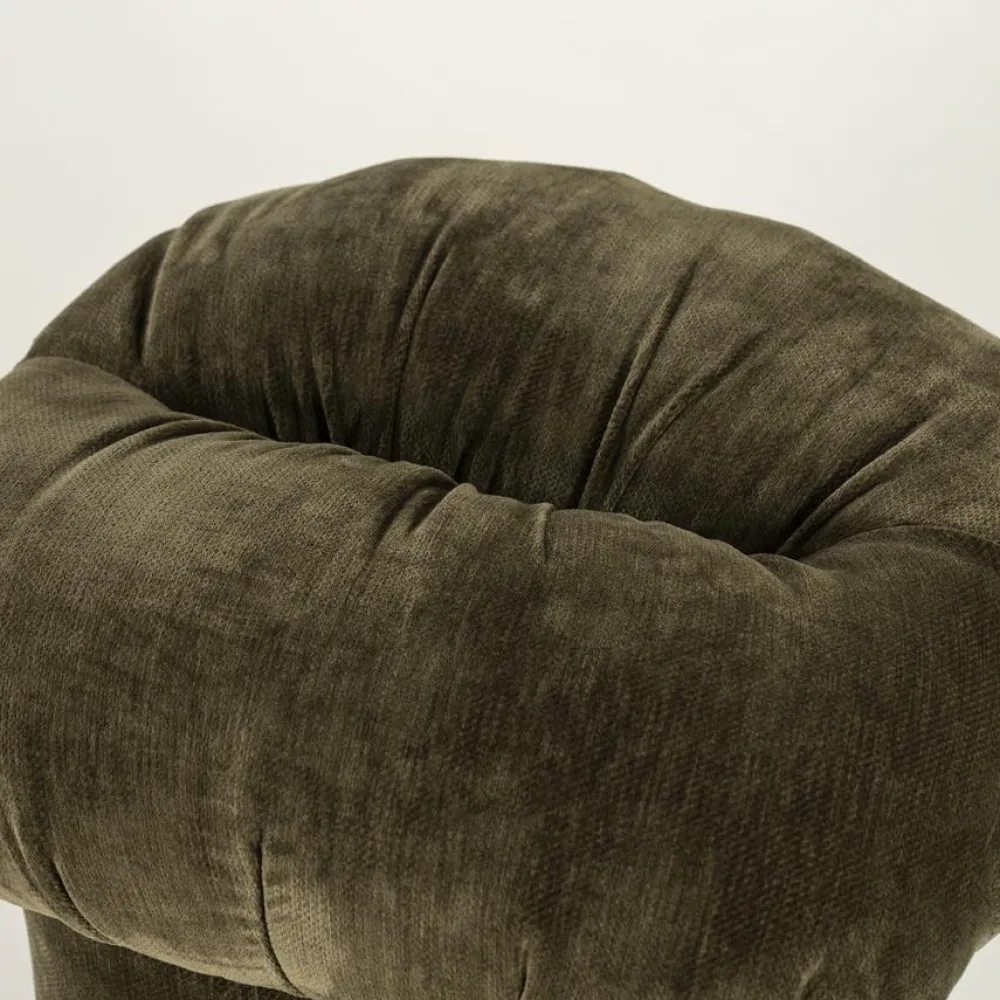 De hocker is bekleed met een zachte stof die prettig aanvoelt en zorgt voor een comfortabele zit of ondersteuning voor de benen. De subtiele plooien en het volumineuze ontwerp geven Nook extra karakter, zonder dat het geheel druk oogt. Daarnaast zorgt de stevige vulling voor een aangenaam en ondersteunend zitgevoel, waardoor de hocker niet alleen decoratief is, maar ook praktisch in gebruik. Of je Nook nu gebruikt als voetenbank, extra zitplek of los accent in de woonkamer, hij voegt direct comfort en zachtheid toe aan de ruimte.