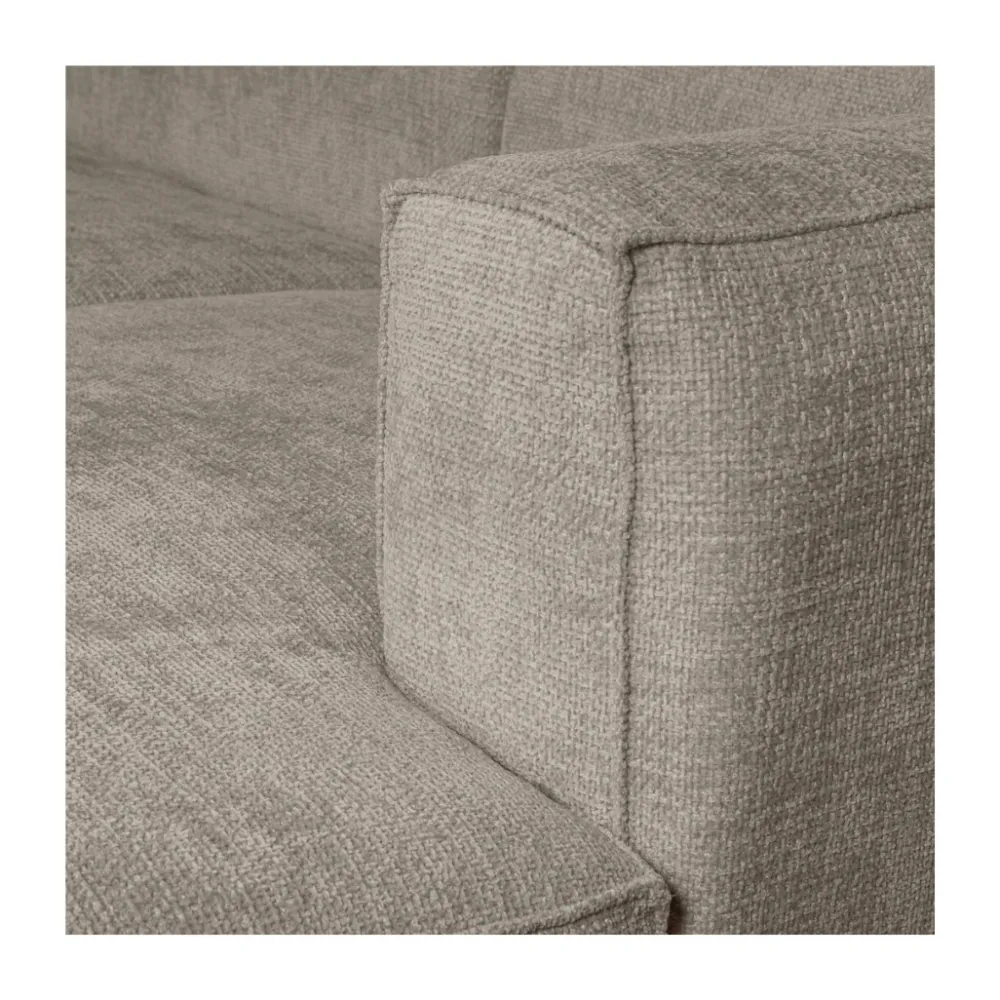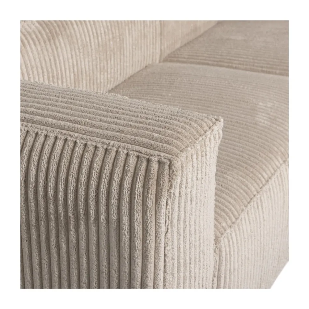 De chaise longue is verkrijgbaar in ribstof en grove melange stof, waardoor je eenvoudig kiest voor de uitstraling die bij jouw interieur past. De ribstof geeft Bean een zachte, speelse textuur met karakter, terwijl de grove melange stof zorgt voor een rustige, natuurlijke look met extra diepte. Beide stoffen voelen prettig aan in dagelijks gebruik en dragen bij aan het comfortabele zitgevoel. De royale chaise longue en diepe zit nodigen uit om languit te ontspannen, terwijl de stevige afwerking ook bij langdurig gebruik comfortabel blijft.