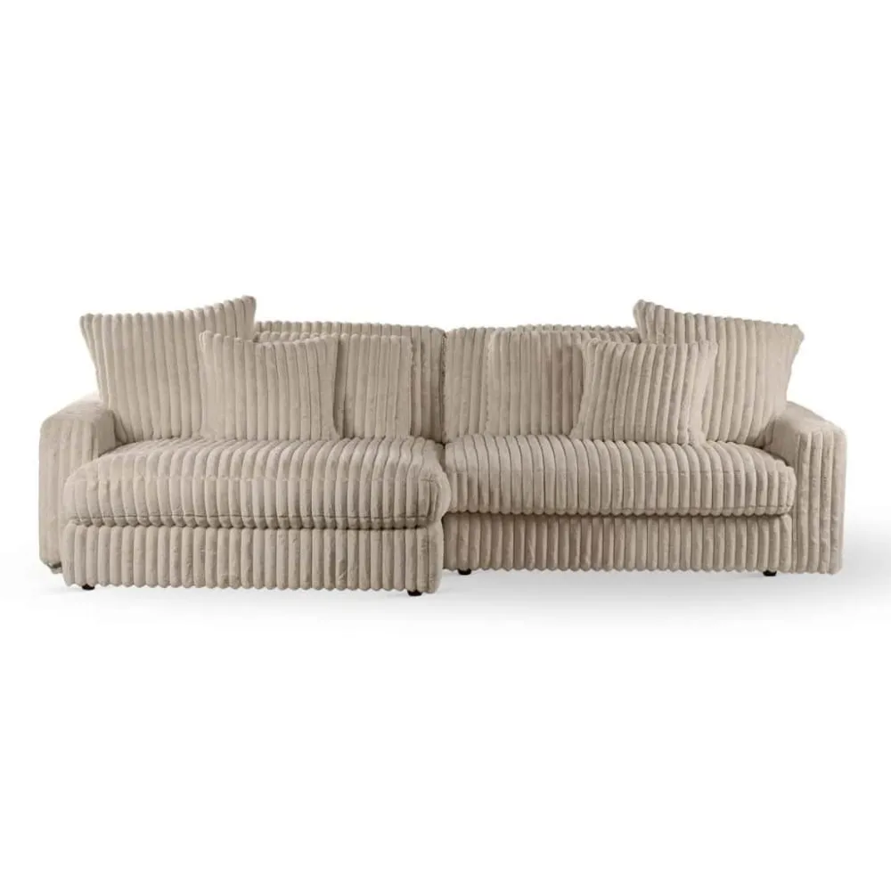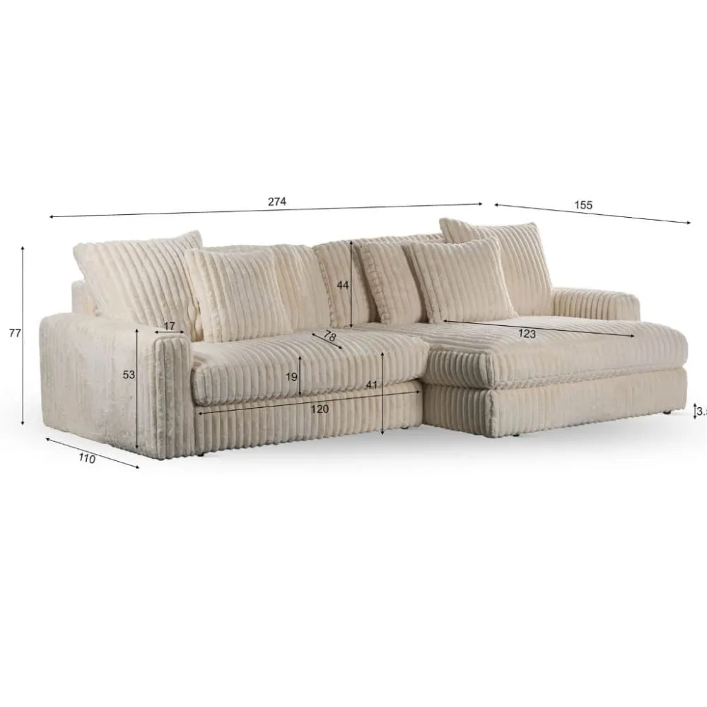 De bank is bekleed met een hoogwaardige stof in een stijlvolle beige tint. Deze kleur vormt een rustige basis in de woonkamer en laat zich eenvoudig combineren met andere meubels en accessoires. De royale afmetingen bieden voldoende ruimte om samen te zitten of heerlijk te ontspannen. Daarnaast zorgen de comfortabele zitdiepte en prettige rughoogte voor goede ondersteuning, ook tijdens langere momenten op de bank.