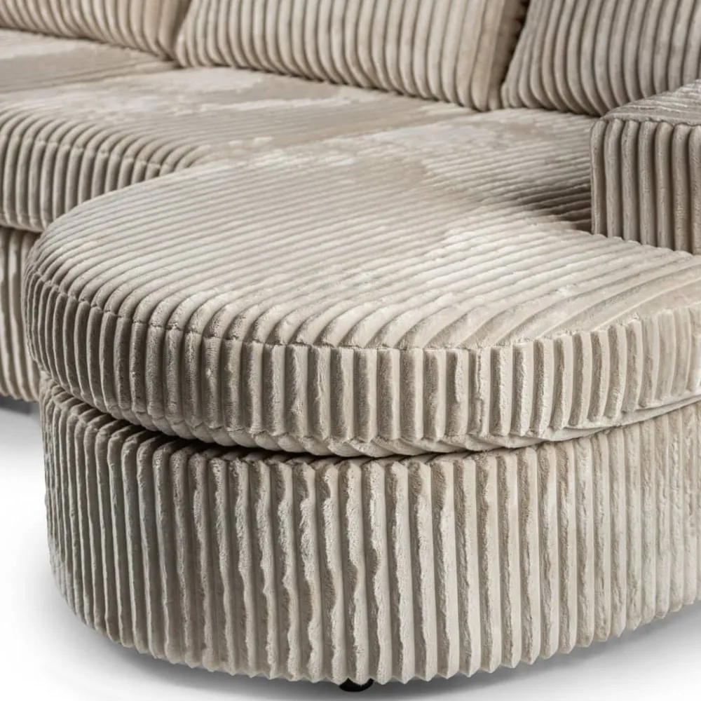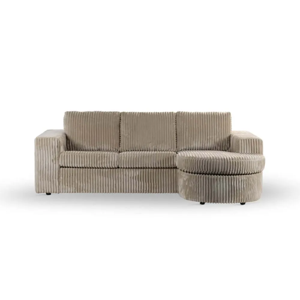 De bank is verkrijgbaar in een zachte stof en in trendy ribstof. Beide varianten voelen aangenaam aan en dragen bij aan het comfortabele zitgevoel. Tegelijk zorgen de vloeiende lijnen en het doordachte ontwerp voor een eigentijdse uitstraling. Zo biedt deze zitbank niet alleen comfort, maar ook een stijlvolle upgrade van je interieur. Gebruik de chaise longue om heerlijk languit te ontspannen of om extra zitruimte te creëren tijdens gezellige momenten samen.