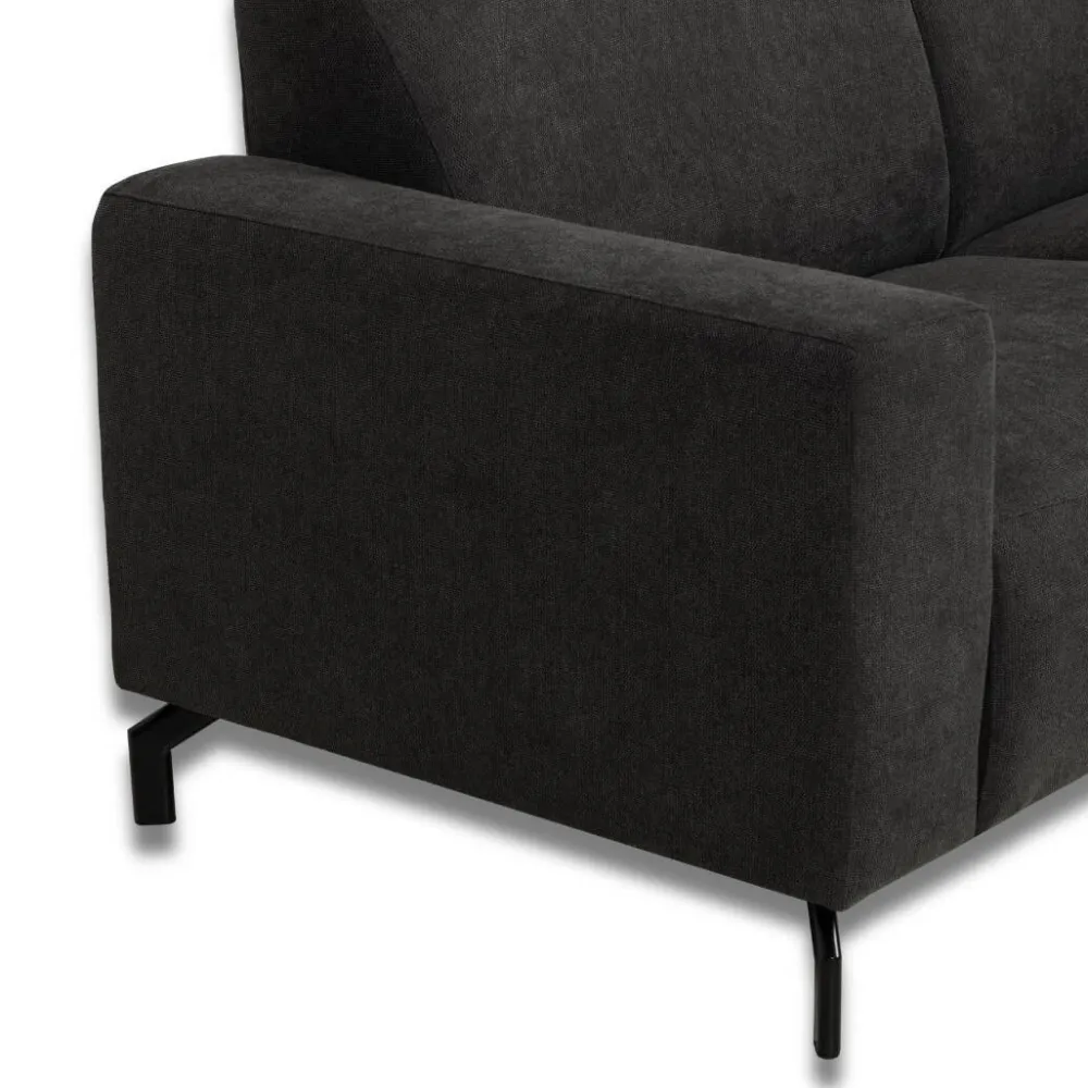 De zwarte metalen poten geven de bank een moderne touch en zorgen voor een luchtige uitstraling. Zo blijft het geheel ruimtelijk ogen, zelfs in een grotere opstelling. Aviano is daarmee een praktische én sfeervolle keuze voor dagelijks gebruik.