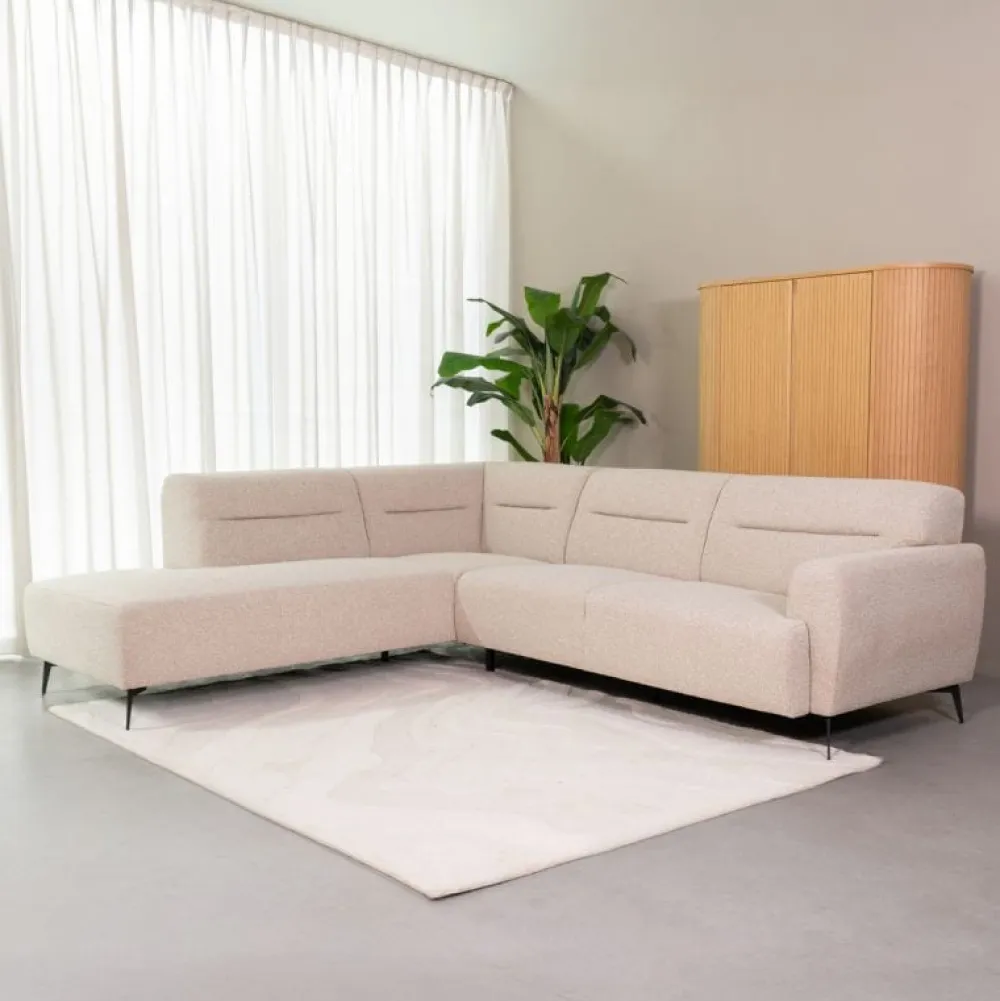De Hoekbank Bolzano van HUUS is een elegante bank met een luxe en uitnodigende uitstraling. Dankzij de zachte bouclé bekleding voelt deze bank warm en comfortabel aan, terwijl de hoekopstelling zorgt voor voldoende zitruimte. Zo vormt dit model een stijlvolle en comfortabele basis in de woonkamer.