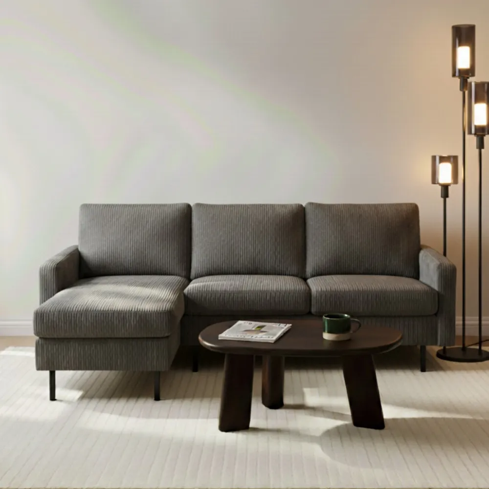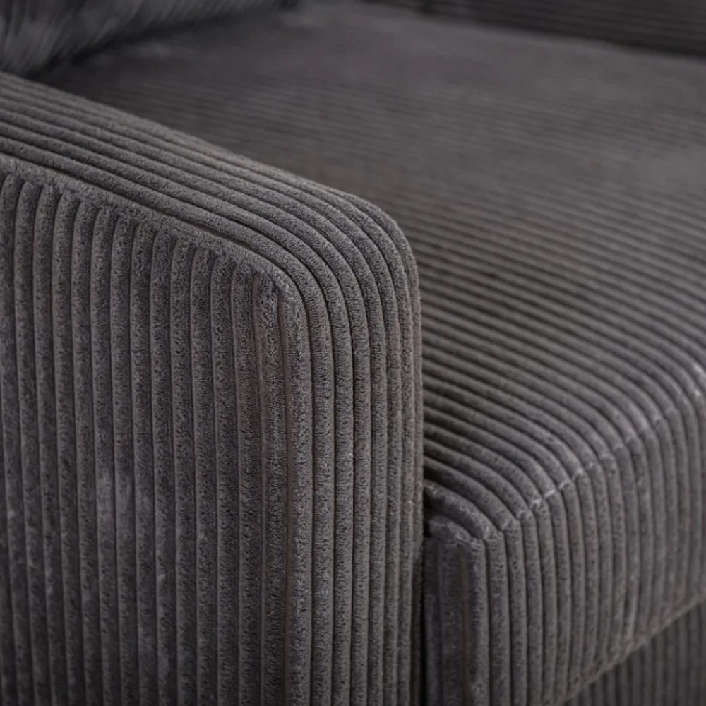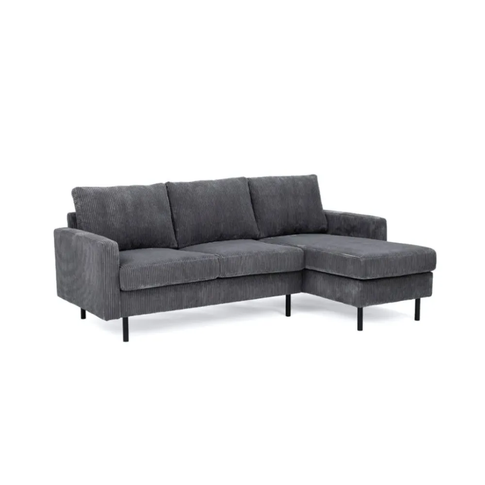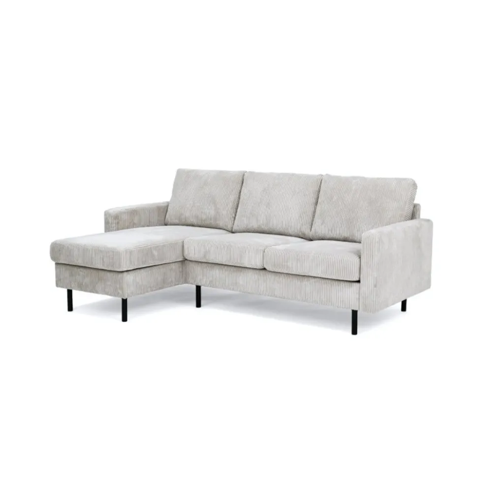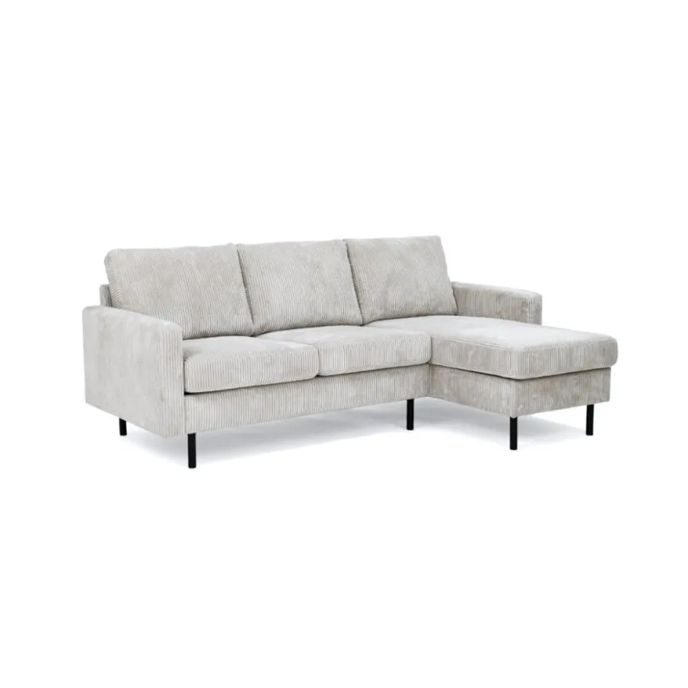 De hoekbank Steije van HUUS combineert eigentijdse vormgeving met optimaal comfort. Dankzij het compacte ontwerp is deze bank ideaal voor kleinere woonruimtes, zonder dat je hoeft in te leveren op stijl of zitgemak. De zachte ribstof bekleding geeft de bank een warme en uitnodigende uitstraling, terwijl de fijne structuur zorgt voor extra textuur in je interieur.