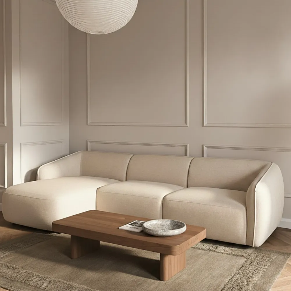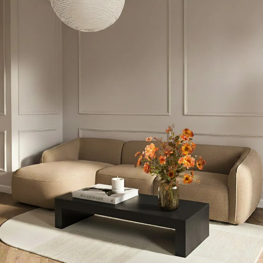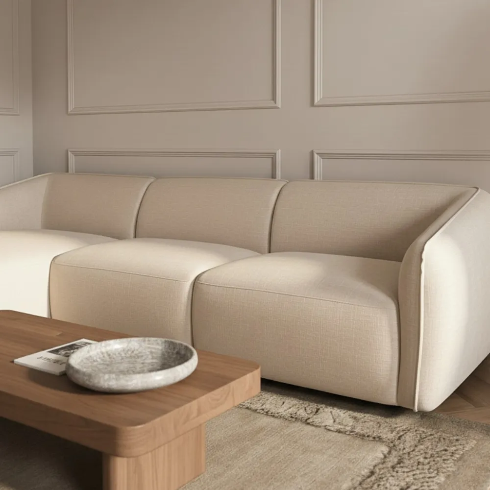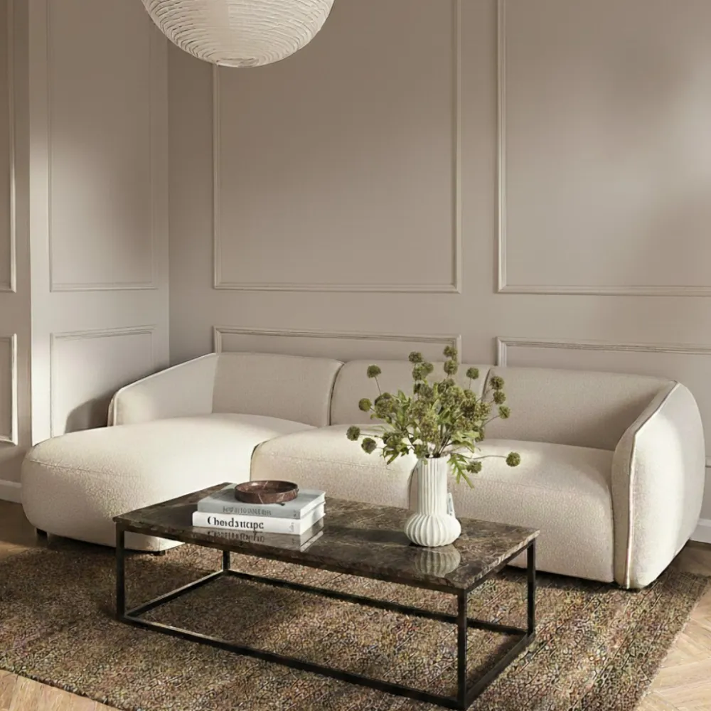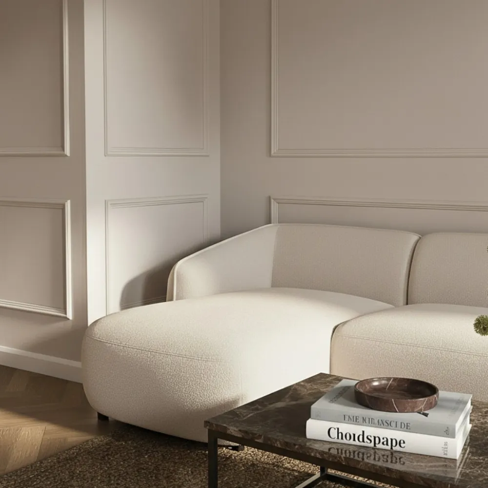 - Zachte bouclé of geweven stof met luxe uitstraling