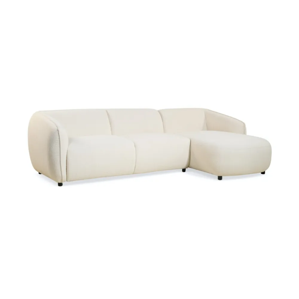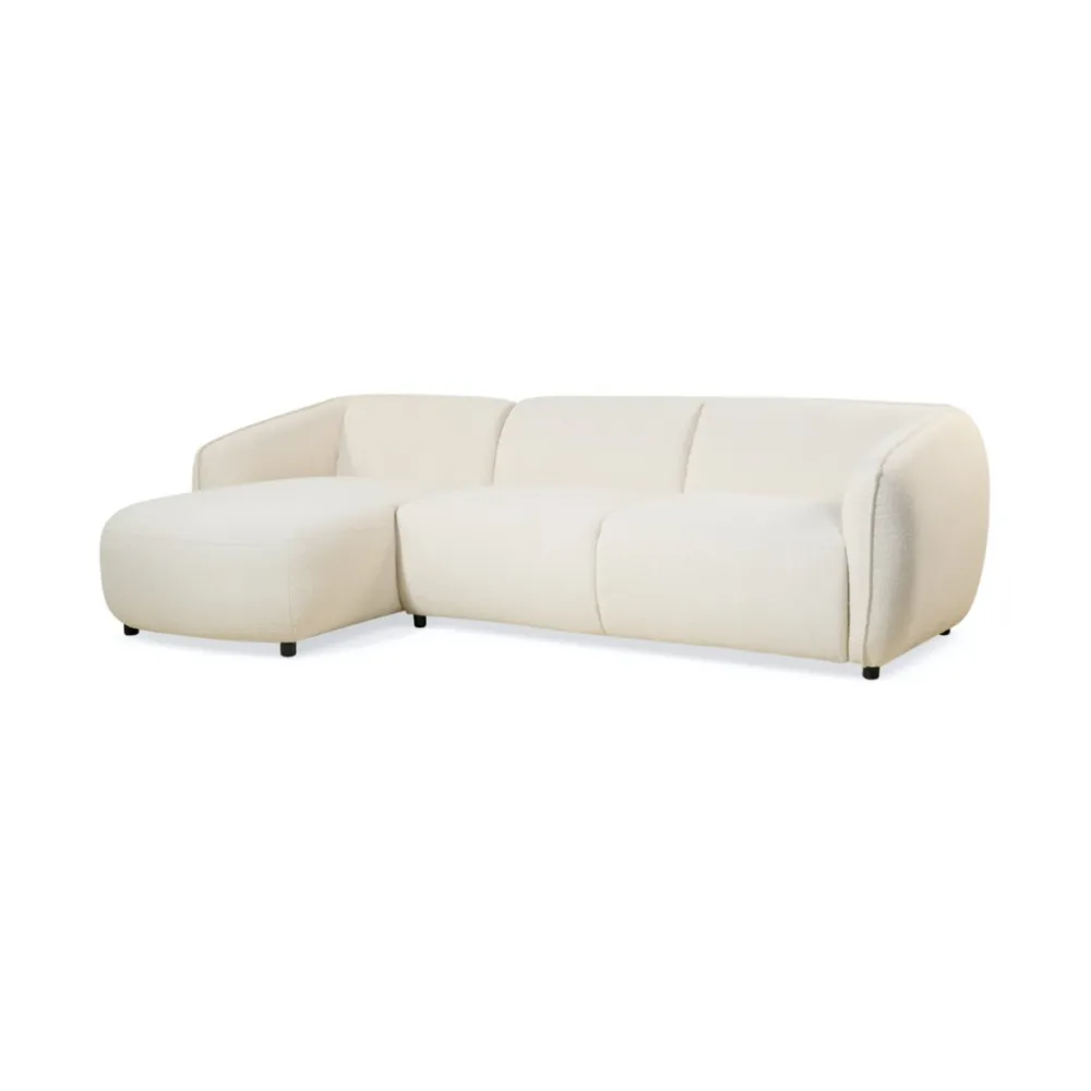 De hoekbank Valerie van HUUS combineert stijl, comfort en kwaliteit. Dankzij de zachte, afgeronde vormen en de luxueuze bouclé stoffering straalt deze bank rust en elegantie uit. De zwarte metalen poten en de fijne stiknaden geven een subtiel designaccent. Zo past de hoekbank moeiteloos in zowel moderne als Scandinavische interieurs.