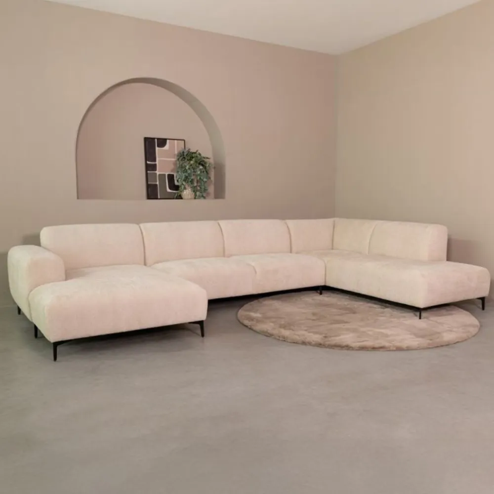 Deze u-bank van LABEL51 is ontworpen voor iedereen die comfort, uitstraling en ruimte wil combineren in één statement meubel. Deze royale familiebank biedt plaats aan het hele gezin en nodigt uit tot lange avonden ontspannen, loungen of samen zijn. De naturel raven stof geeft de bank een warme, eigentijdse uitstraling, terwijl de zwarte metalen poten zorgen voor een stoer en modern contrast.