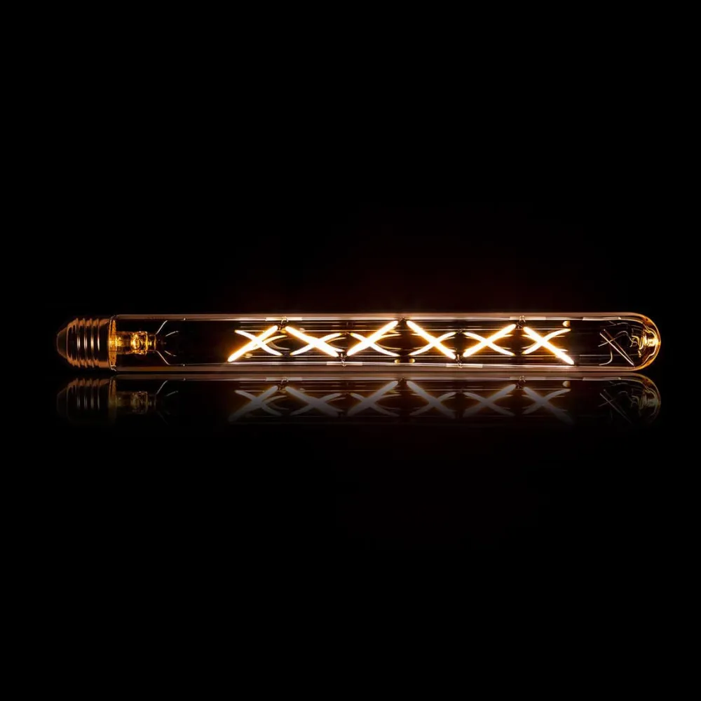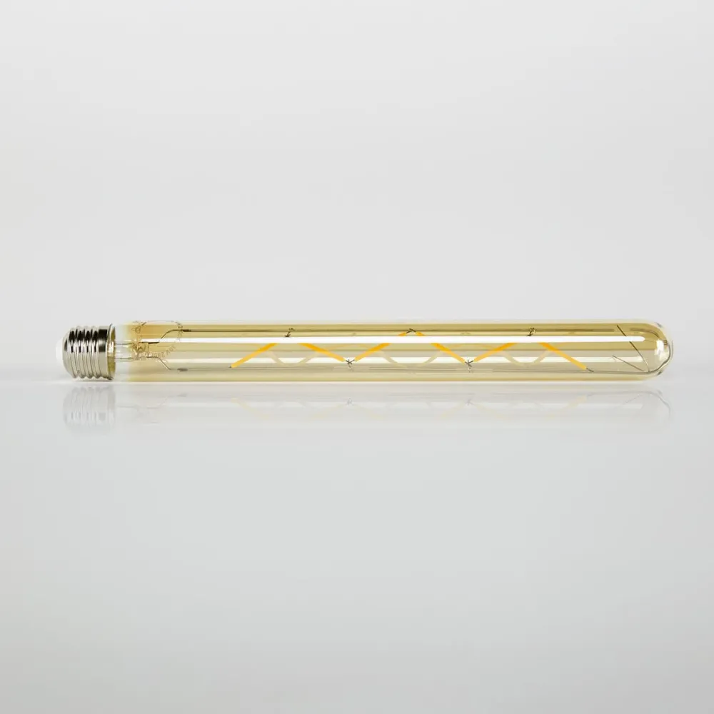 Deze lichtbron LED filament heeft amberkleurig glas en heeft de vorm van een buis en is 30 centimeter lang. Aangezien deze lichtbron een lichtkleur van 2100K heeft, geeft hij extra warm licht. De lichtbron is dimbaar. Fitting: E27 Wattage: 4 Lichtkleur: 2100K Lumen: 280 lm Onderhoud: Afnemen met een lichtvochtige doek