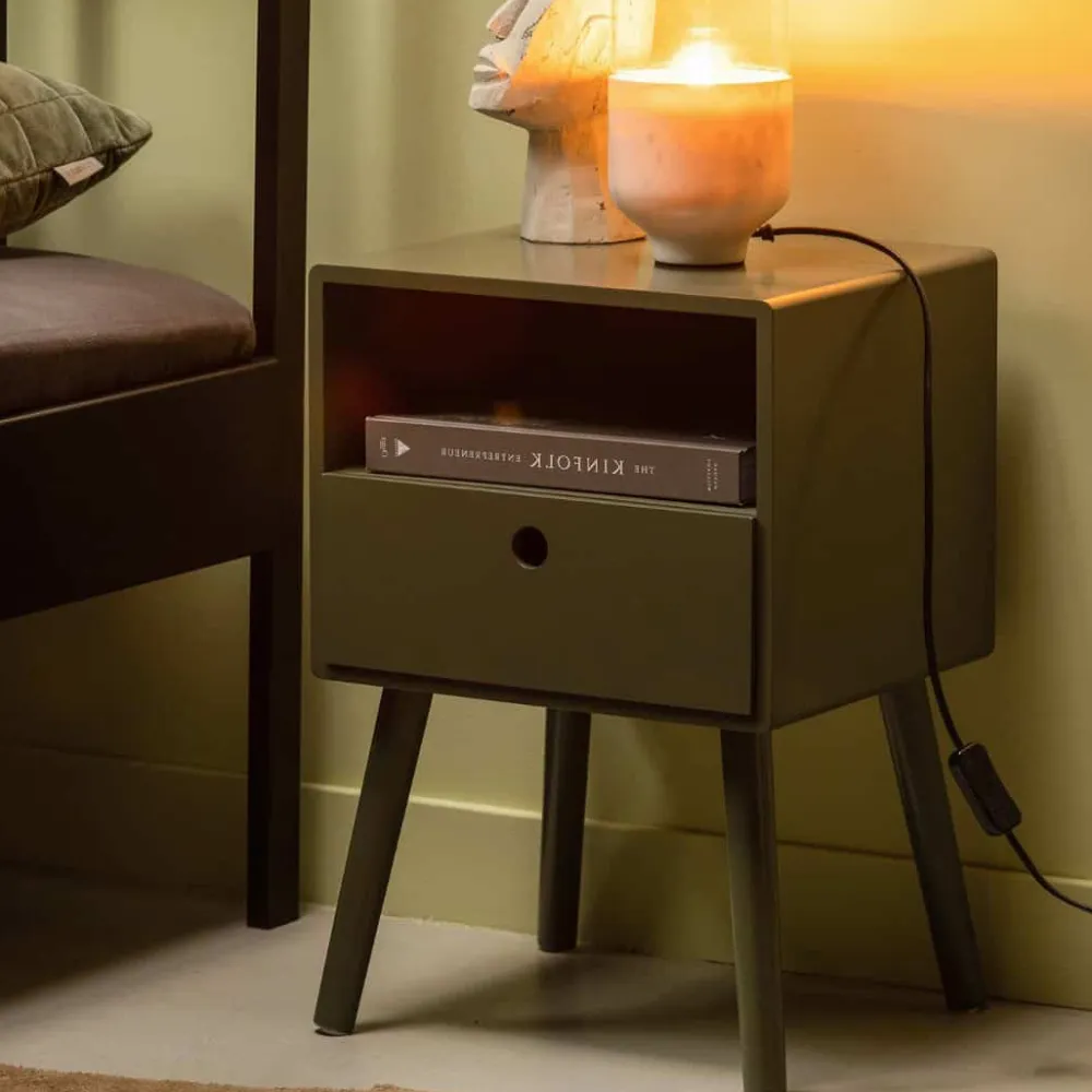 Het Ozzy nachtkastje komt uit de collectie van het Nederlandse interieurmerk WOOOD en is onopvallend stijlvol door het eenvoudige design. Het gebruik van het afgelakte MDF hout zorgt ervoor dat het nachtkastje kalmte uitstraalt en zich gemakkelijk in de stijl van jouw slaapkamer voegt.