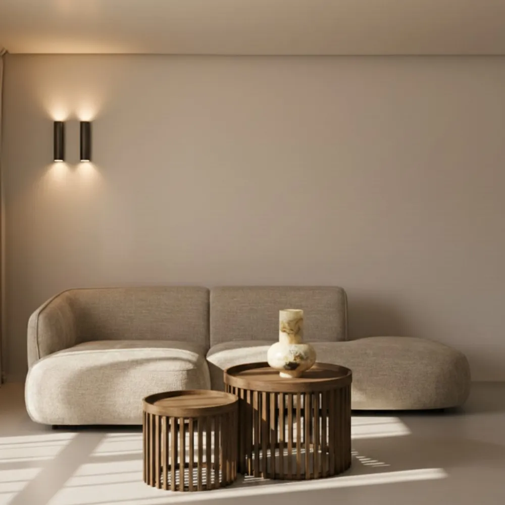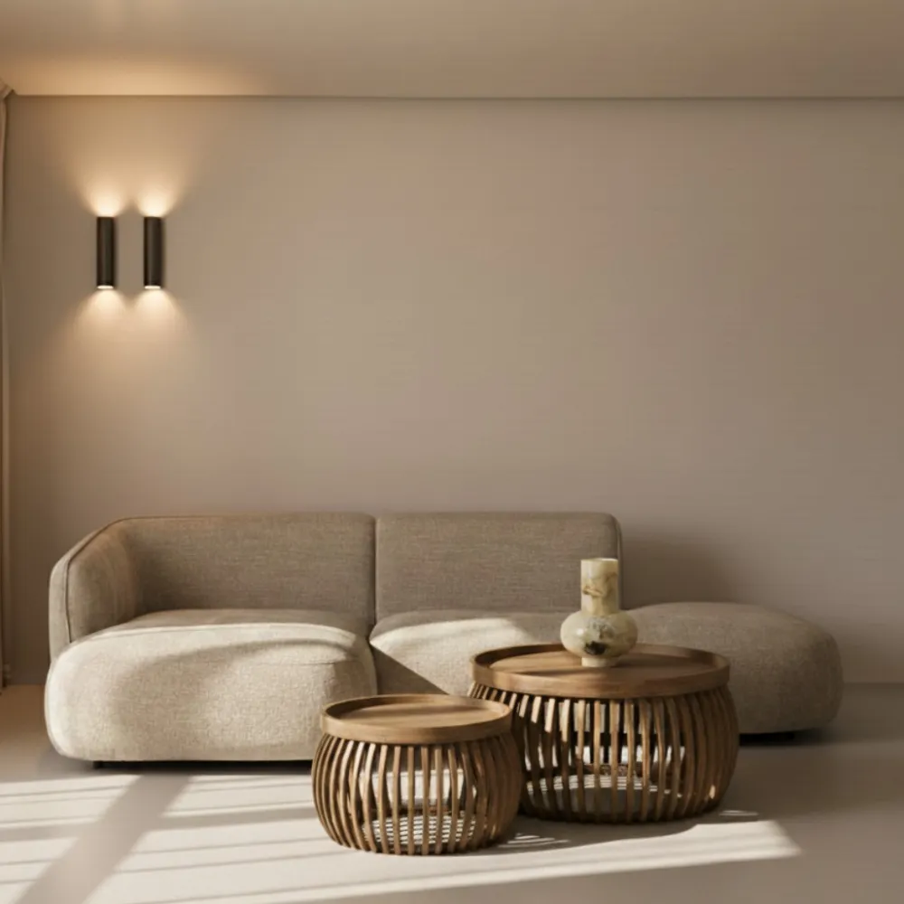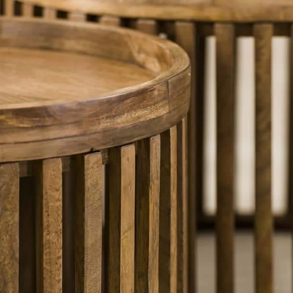 De salontafelset Pascal uit de HUUS Premium collectie is een echte blikvanger in jouw woonkamer. Gemaakt van massief mangohout met een warme zandkleurige finish, straalt deze set natuurlijke elegantie uit. De tafelbladen liggen los op de stijlvolle tonvormige onderstellen met spijlen, waardoor er extra opbergruimte ontstaat. Ideaal voor het opbergen van bijvoorbeeld een plaid of tijdschriften.