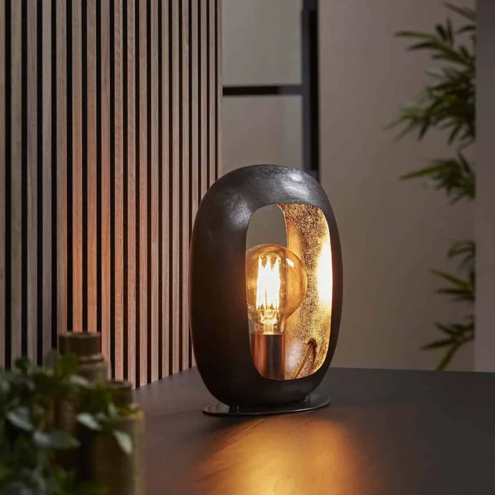 Deze tafellamp Ayden is uitgevoerd in metaal met een zwart nikkel finish. Binnenin is gebruik gemaakt van een ‘zilver’ look finish wat zorgt voor een mooie en versterkte uitstraling van het licht. Deze lamp is in drie verschillende maten uitgevoerd.