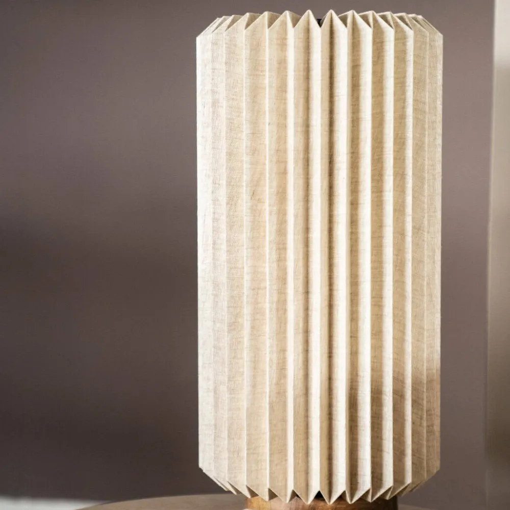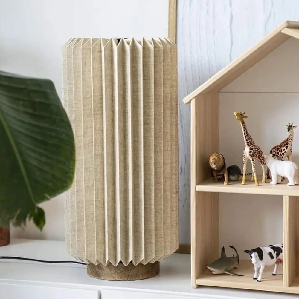 Met zijn eigentijdse ontwerp voegt de Zuki tafellamp een vleugje moderniteit toe aan elk interieur. Het gebruik van natuurlijke materialen geeft de lamp een warme en uitnodigende gloed, waardoor hij ideaal is voor gezellige avonden of het creëren van een ontspannen sfeer in huis.