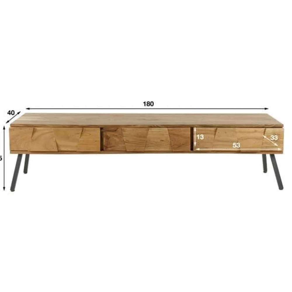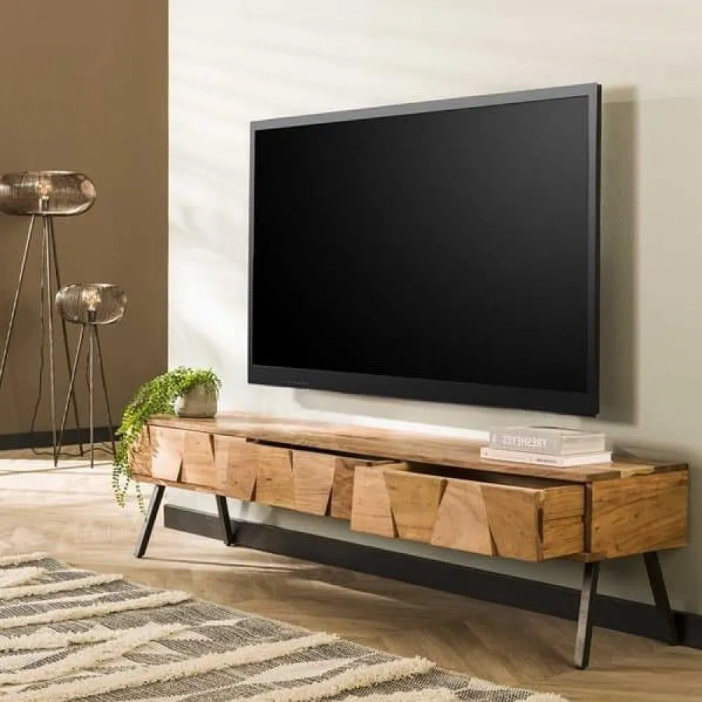 Tv-meubel Demian is uitgevoerd in massief acacia hout met een prachtige bewerking op het front. Dit geeft het TV-meubel een stoere, maar chique touch. Een echte eye-catcher! Het TV-meubel beschikt over 3 lades. Het TV Meubel heeft ook een bijpassend nachtkastje en kaptafel.