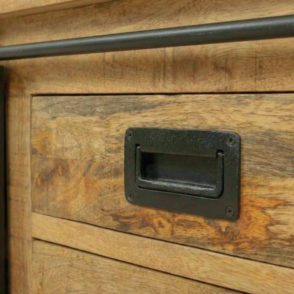 TV-meubel Lotte uit de HUUS Premium collectie combineert massief mangohout met zwarte metalen accenten en vormt daarmee een krachtige basis voor je woonkamer. Het robuuste ontwerp past moeiteloos in zowel moderne, industriële als landelijke interieurs. Omdat mangohout een natuurproduct is, heeft ieder TV-meubel een unieke houtstructuur en kleurnuance. Zo haal je altijd een meubel met karakter in huis.