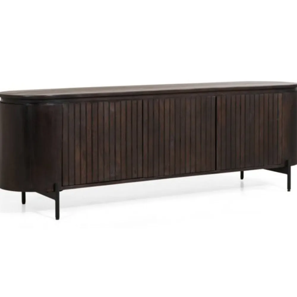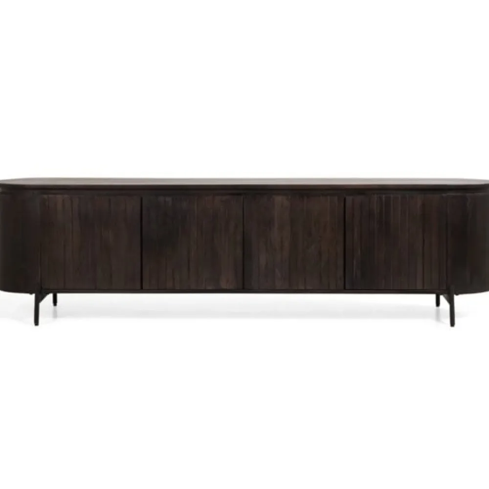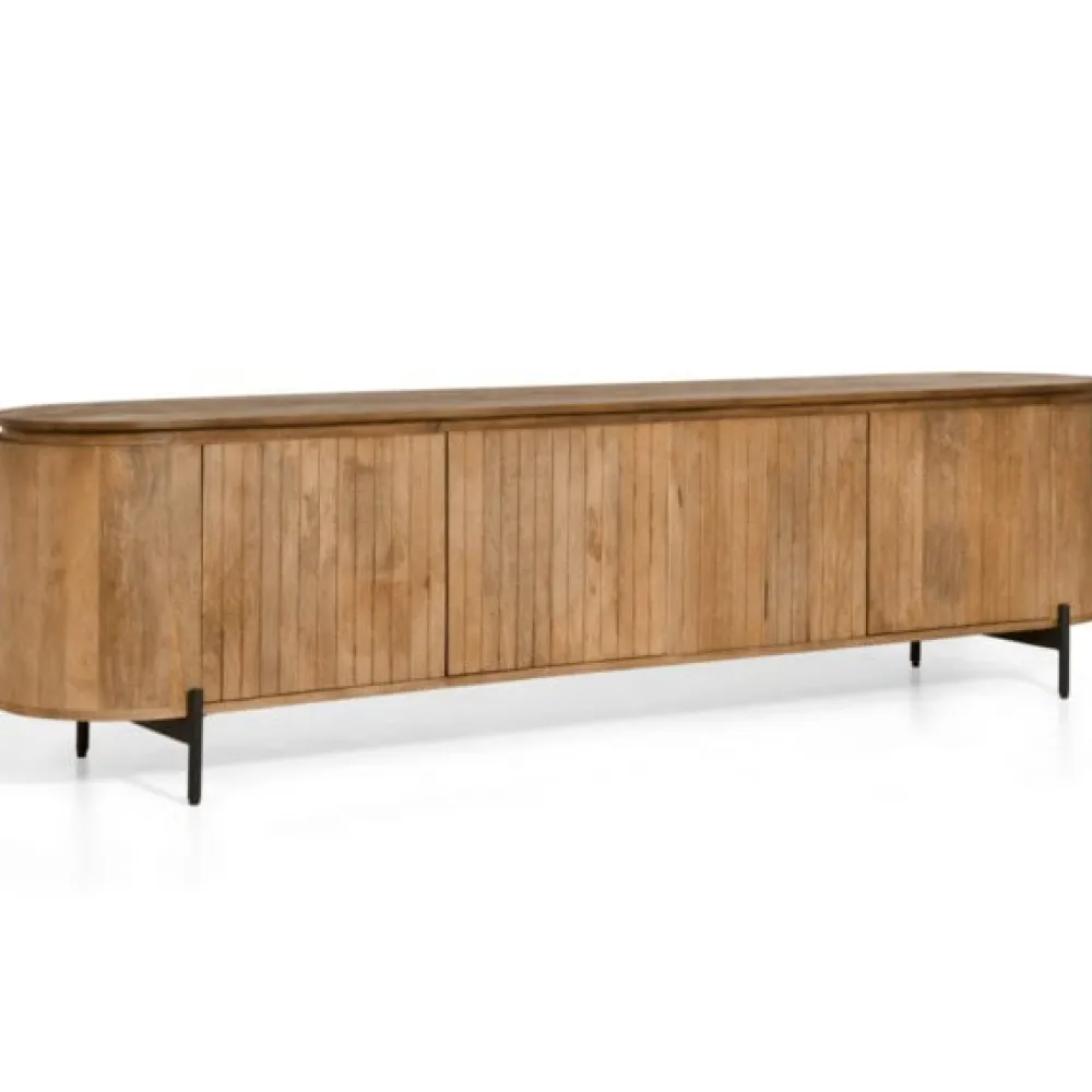 Ontdek de pure elegantie en de natuurlijke charme van ons TV Meubel Mokka. Met een rijke, warm bruine tint, gecombineerd met duurzaam hout, verandert dit stuk onmiddellijk elke woonruimte in een sfeervolle, warme omgeving. Dit meubelstuk is vervaardigd uit robuust mango hout, bekend om zijn unieke patronen en duurzaamheid. De afwerking versterkt de natuurlijke schoonheid van het hout, waardoor het in elk interieur perfect tot zijn recht komt. De subtiele ronde zijkanten maken het ontwerp af en zorgen voor een zachte, elegante uitstraling.