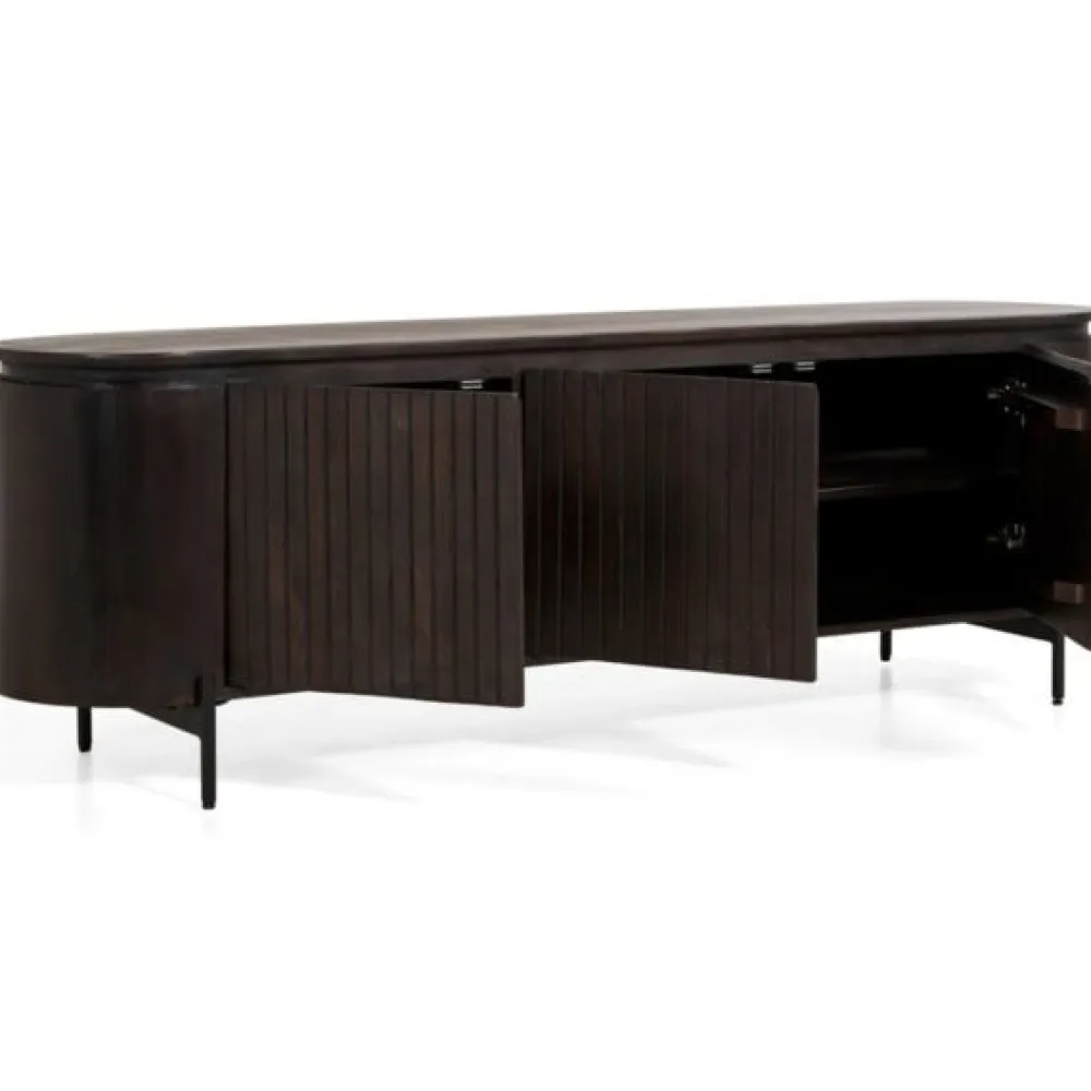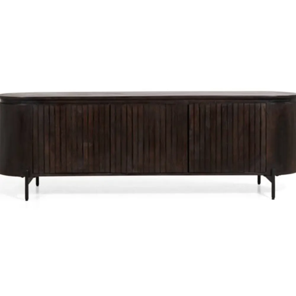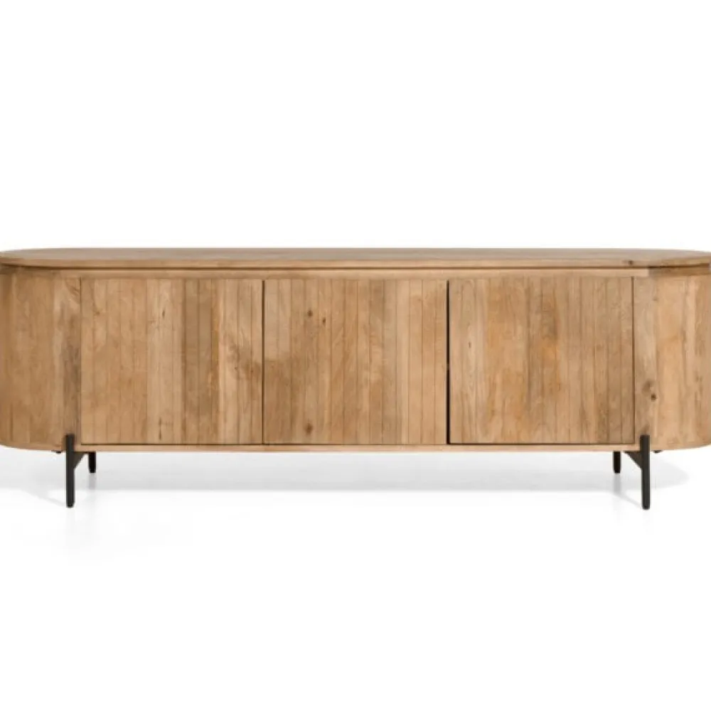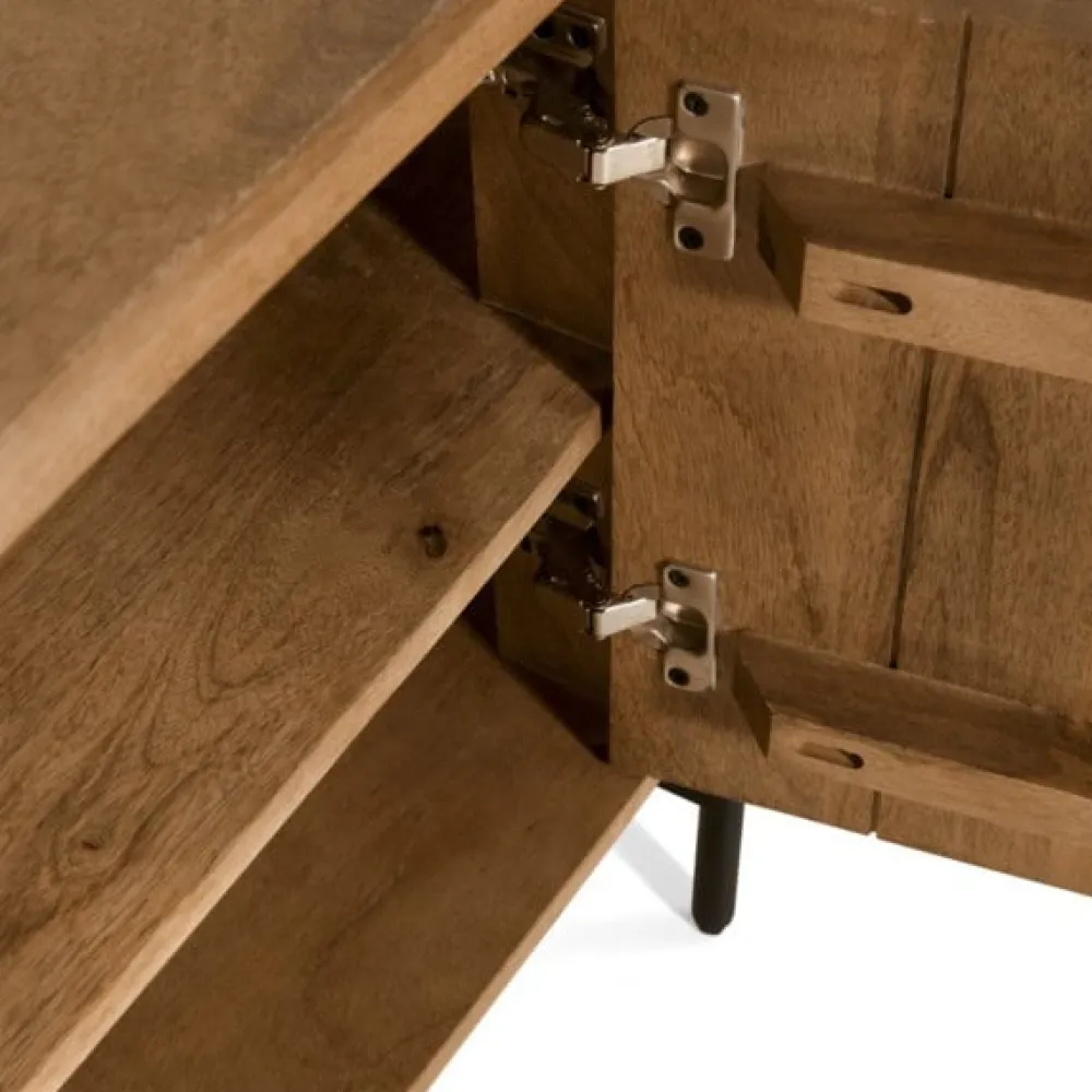 Ontdek de pure elegantie en de natuurlijke charme van ons TV Meubel Mokka. Met een rijke, warm bruine tint, gecombineerd met duurzaam hout, verandert dit stuk onmiddellijk elke woonruimte in een sfeervolle, warme omgeving. Dit meubelstuk is vervaardigd uit robuust mango hout, bekend om zijn unieke patronen en duurzaamheid. De afwerking versterkt de natuurlijke schoonheid van het hout, waardoor het in elk interieur perfect tot zijn recht komt. De subtiele ronde zijkanten maken het ontwerp af en zorgen voor een zachte, elegante uitstraling.