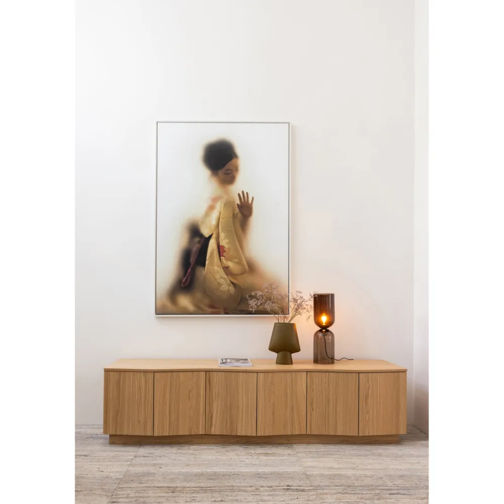Een clean design, uniek gevormde kastdeurtjes en een mooie natuurlijke kleur. Dat zijn de kenmerken van de Zuma-serie uit de Exclusive collectie van het Nederlandse interieurmerk WOOOD. Met zijn strakke lijnen en tijdloze ontwerp voegt de Zuma TV-kast een vleugje verfijning toe aan je interieur. Het meubel is voorzien van vier deuren die toegang geven tot ruime opbergvakken, ideaal voor het organiseren van je media-apparatuur en accessoires. De nerven en knoesten in het eikenhout benadrukken de authentieke uitstraling en maken elk stuk uniek.