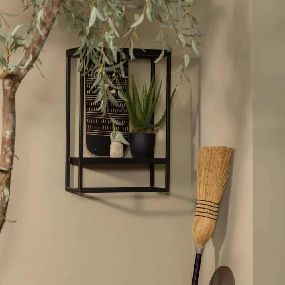 Met het zwart gelakte metalen wandrek Febe heb je een trendy en eigentijdse wandrek in huis. Door de UV-bescherming kan dit rek ook buiten worden gebruikt maar hang ‘m bijvoorbeeld onder een overkapping, dan blijft ‘ie langer mooi! Metaal kan door regen en weersomstandigheden namelijk wel gaan roesten. Met de 2 ophanghaken, die aan de bovenkant in het metaal zijn gelast, kan het rek eenvoudig opgehangen worden.