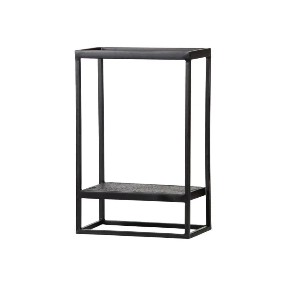 De vakkenkast is gemaakt van gegoten zwart metaal. De kast weegt 12,7 kg.