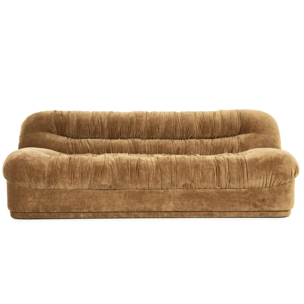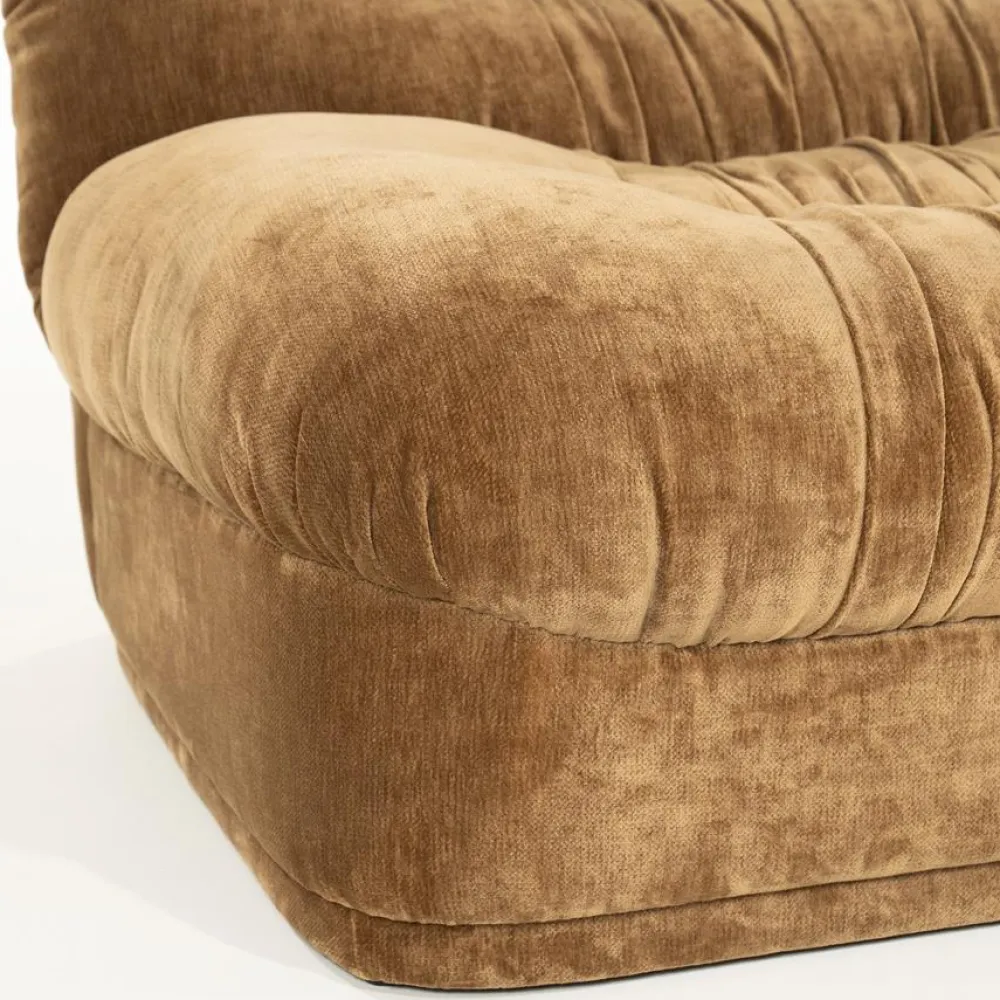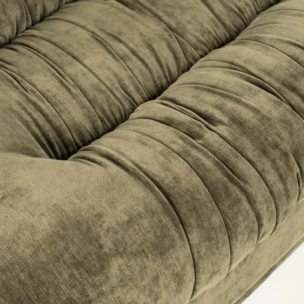 De bank is volledig bekleed met een zachte, luxe stof die prettig aanvoelt en zorgt voor extra comfort. Bovendien geven de subtiele plooien en het ronde volume de bank karakter en diepte. De royale zit en comfortabele rugleuning nodigen uit om te ontspannen. Zo is Nook niet alleen mooi om te zien, maar ook heerlijk om op te zitten.
